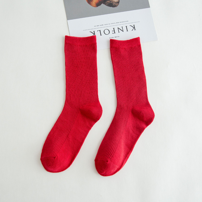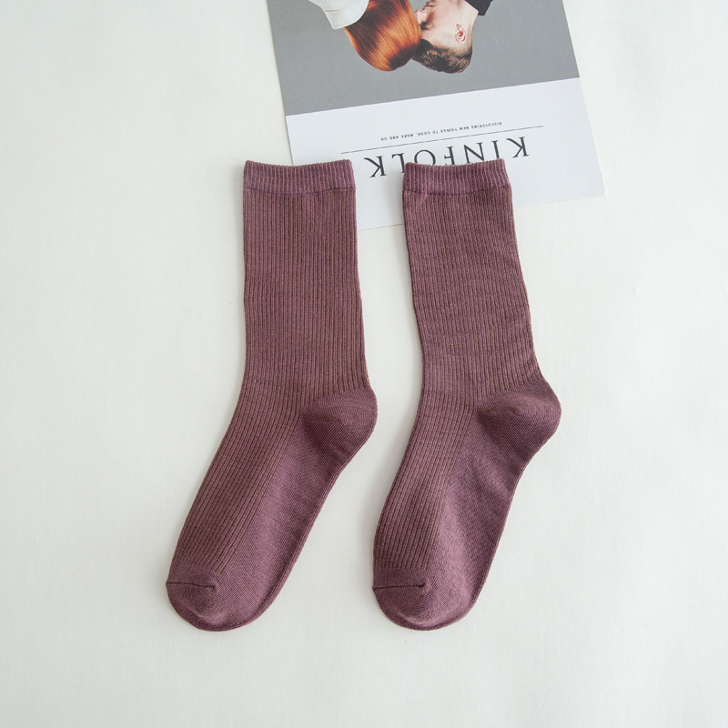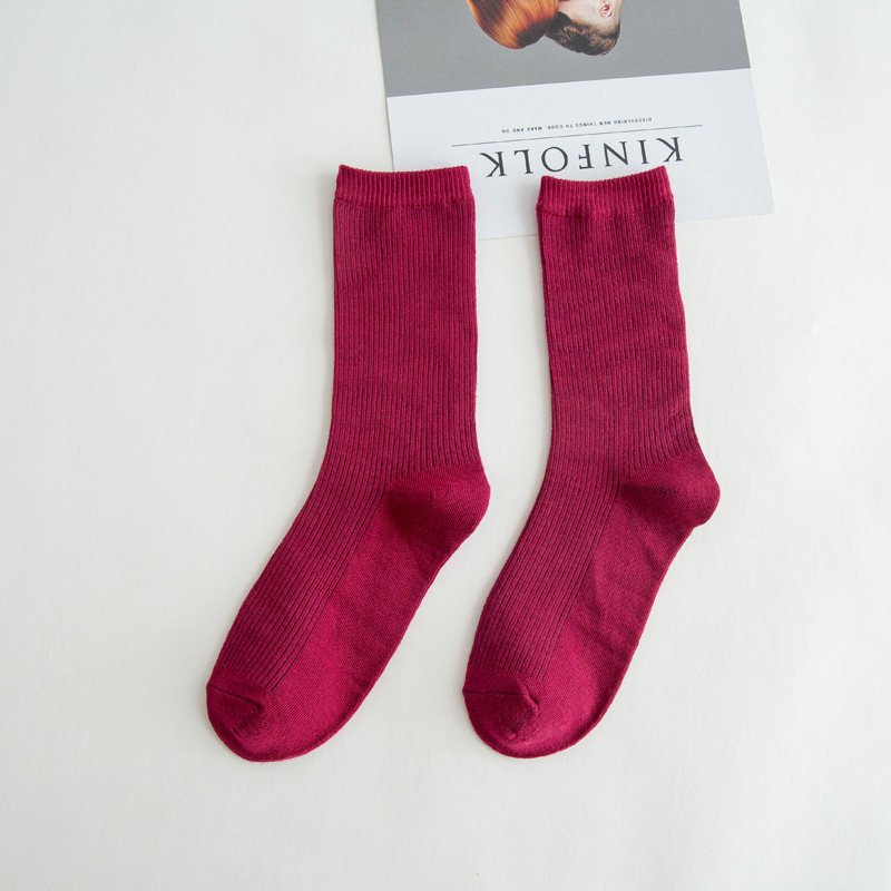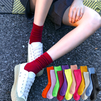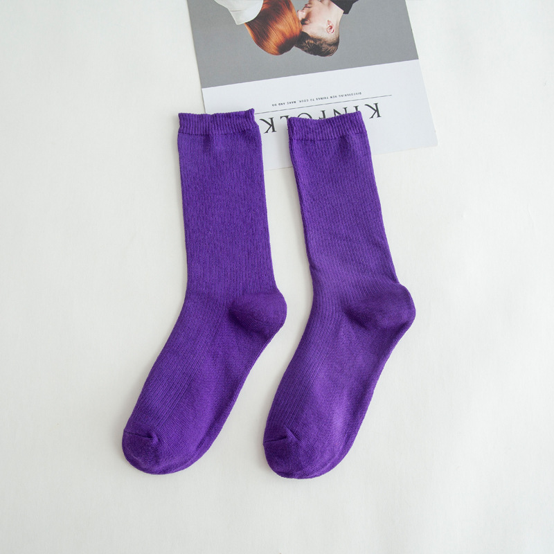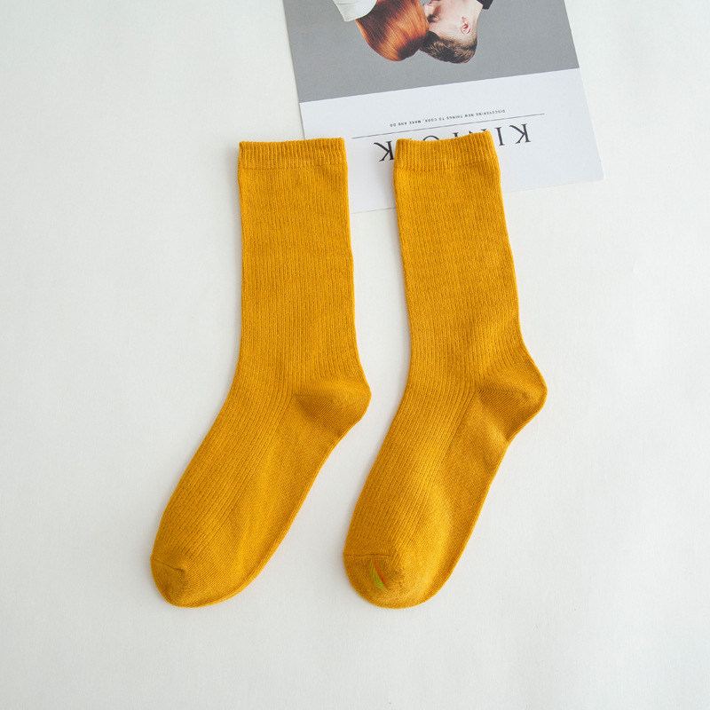 제조업체 양말 봄과 가을 새로운 긴 튜브 파일 양말 단색 패션 스타일 긴 튜브 유행 양말 도매