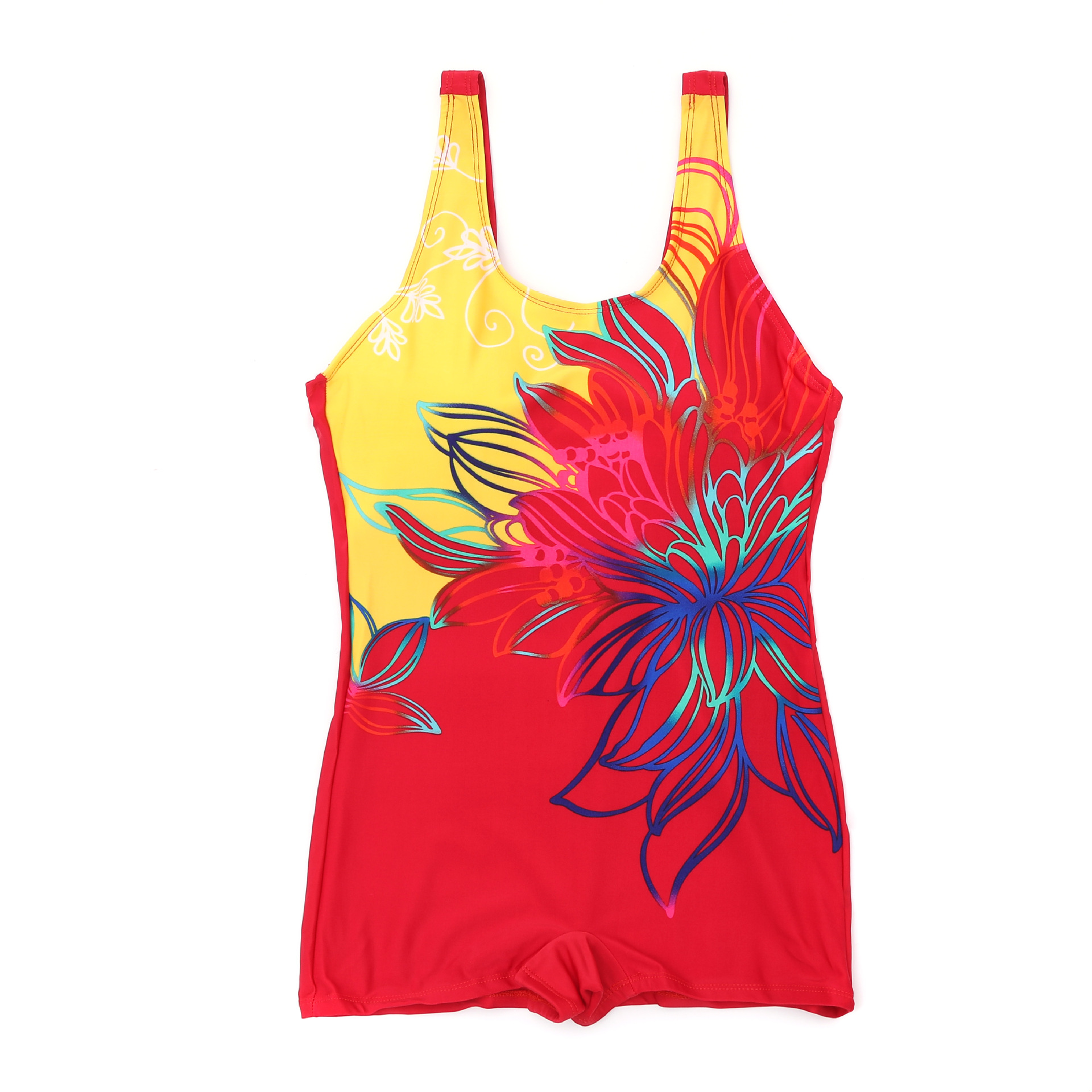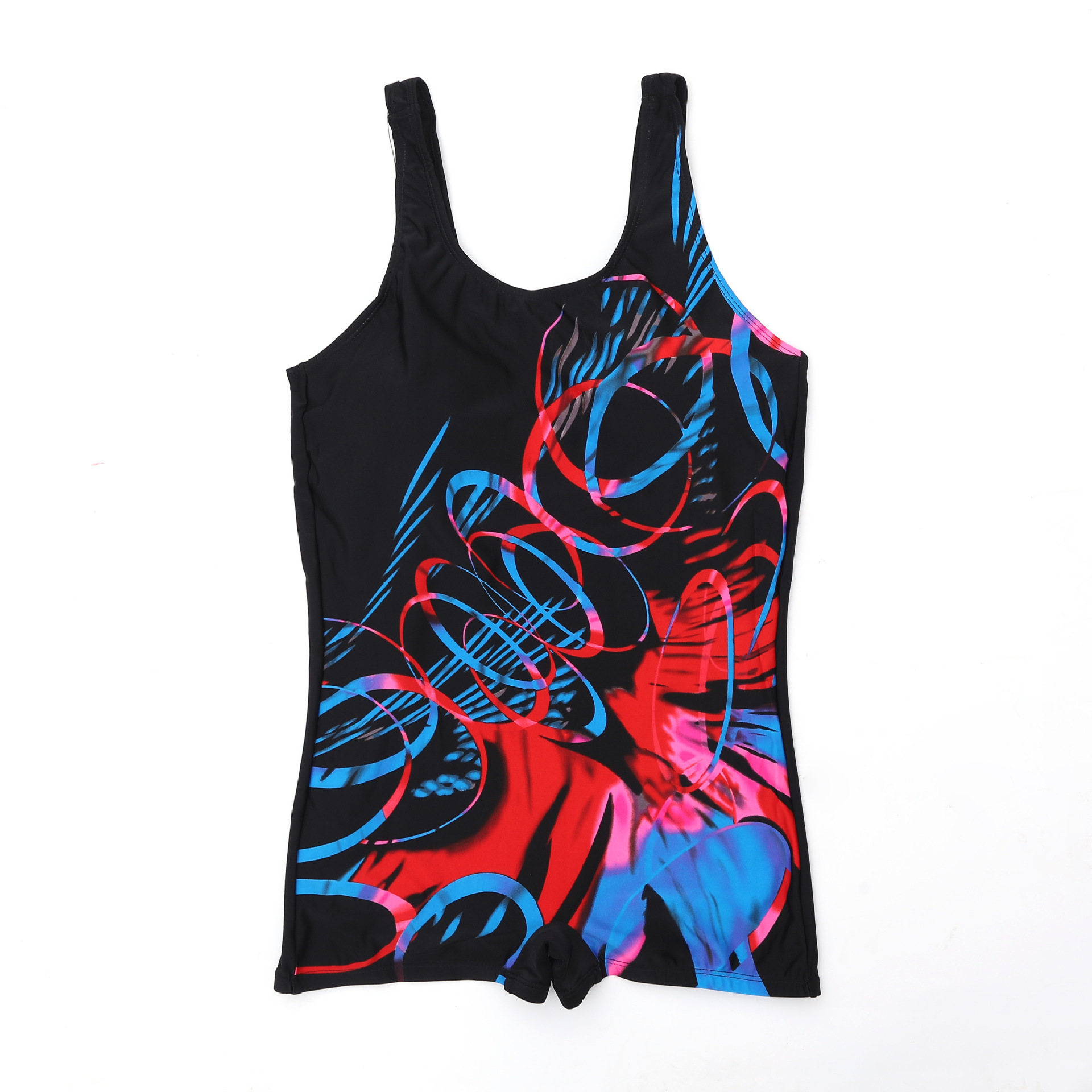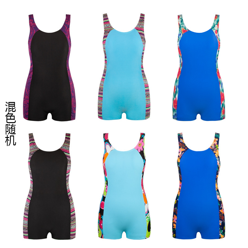 游泳衣女连体保守专业泳衣批发无袖平角泳装大码厂家直销