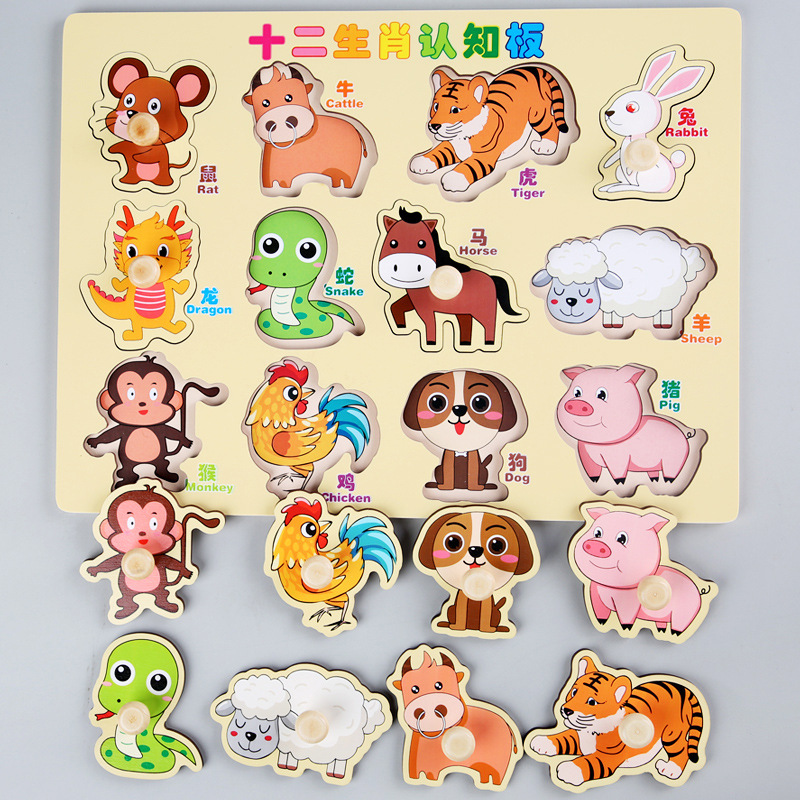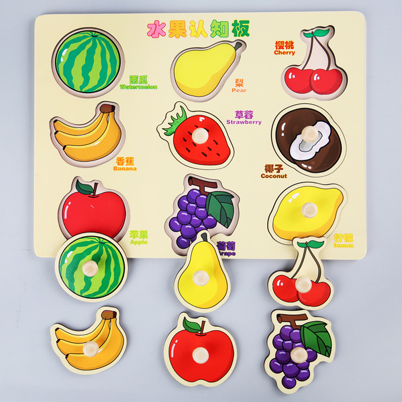 나무 레이저 퍼즐 손 잡기 보드 몬테소리 조기 교육 정보 개발 편지 과일 동물 야채 퍼즐 보드스토어 가기