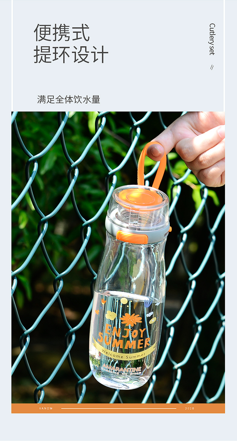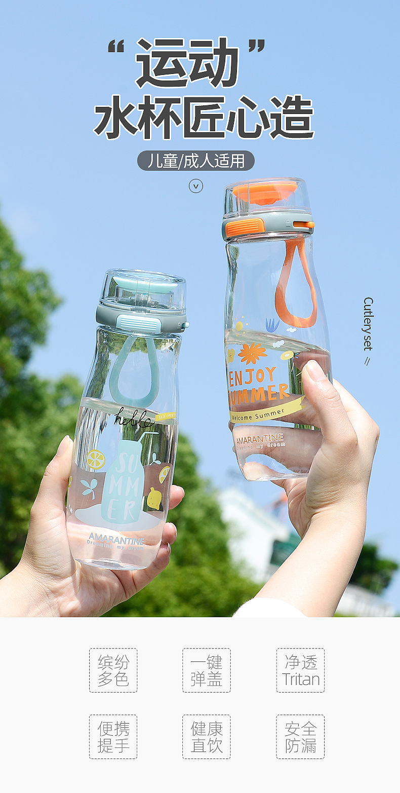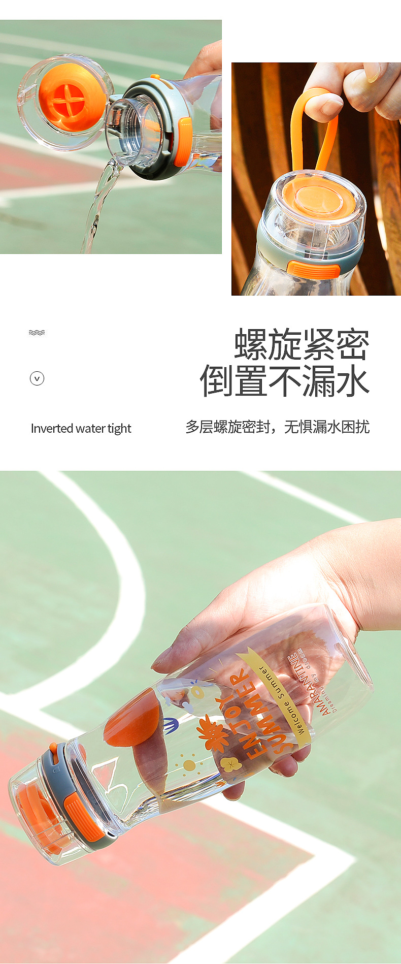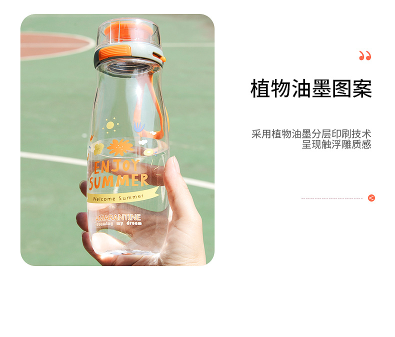 엄선된 플라스틱 물병, 야외용 휴대용 학생용 스포츠 물병, 사각형 휴대용 컵스토어 가기
