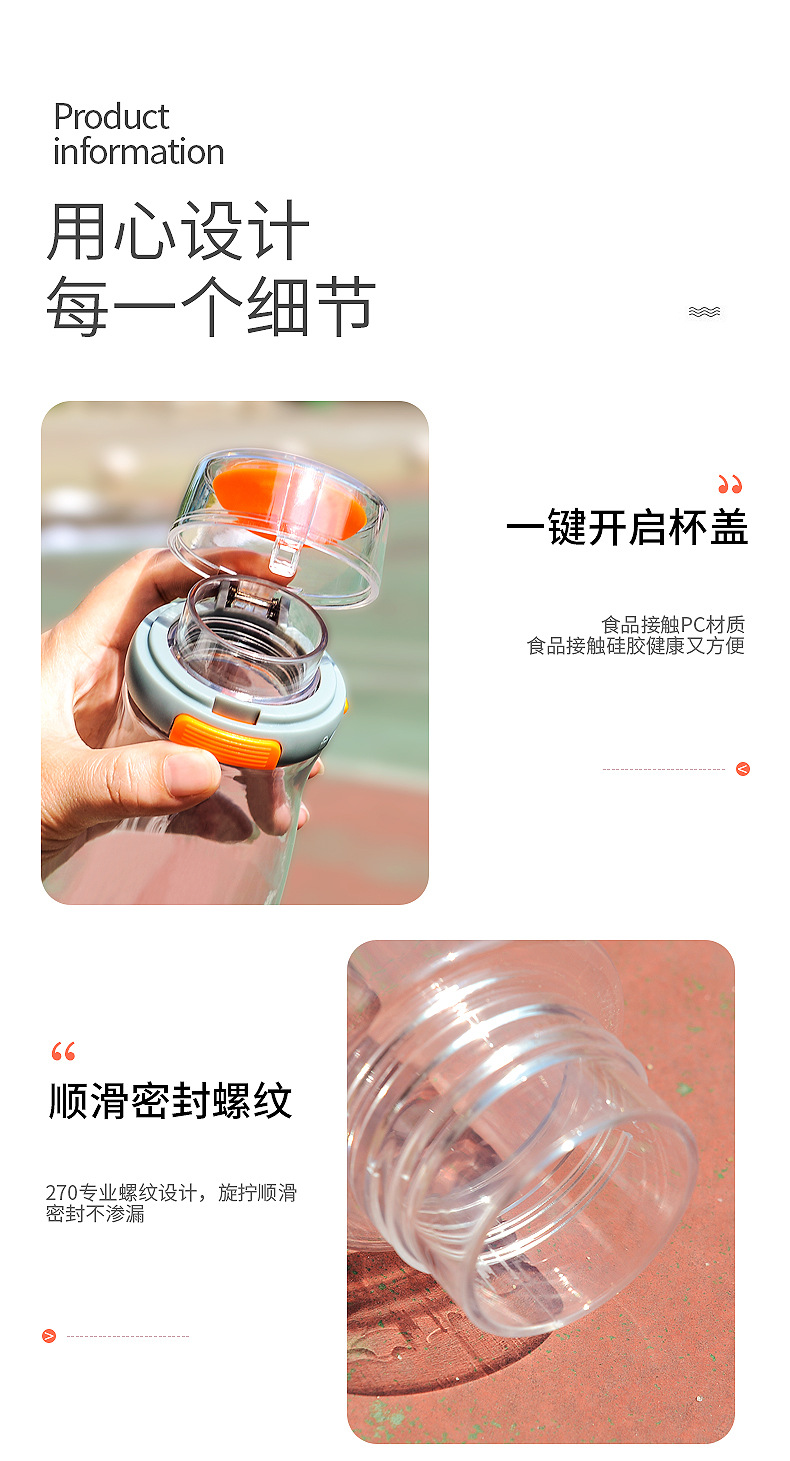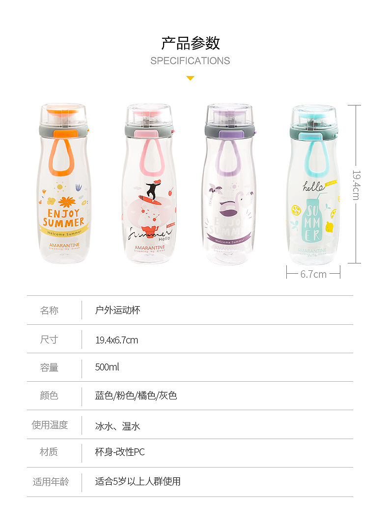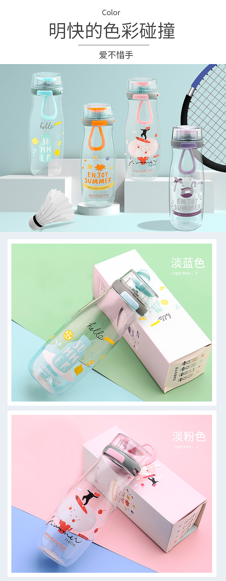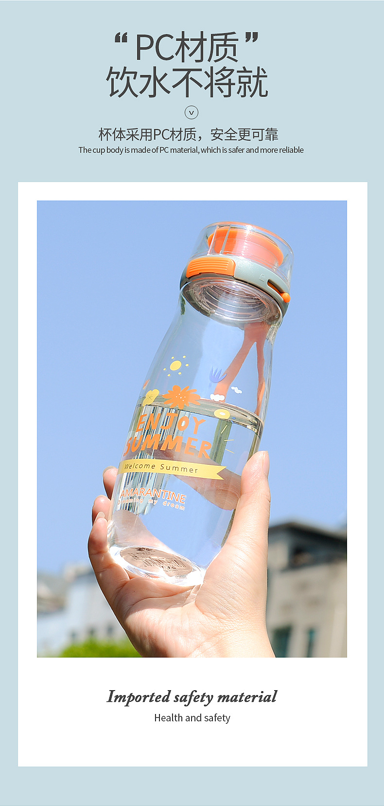 엄선된 플라스틱 물병, 야외용 휴대용 학생용 스포츠 물병, 사각형 휴대용 컵스토어 가기