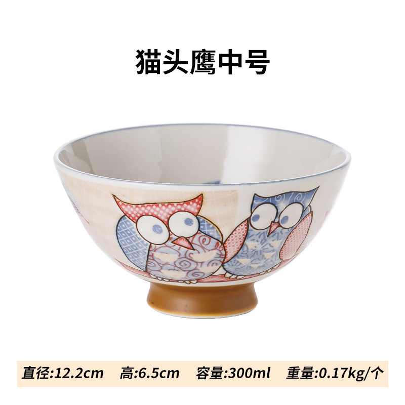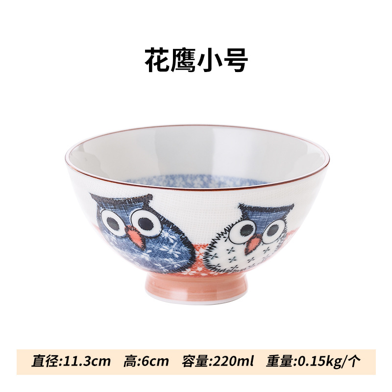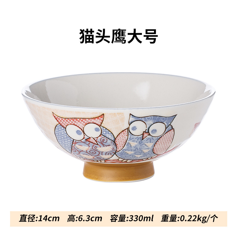 일본 수입 올빼미 밥그릇 언더 글레이즈 잠자리 꽃 세라믹 식기 만화 동물 토끼 그릇 어린이 그릇