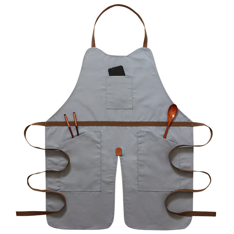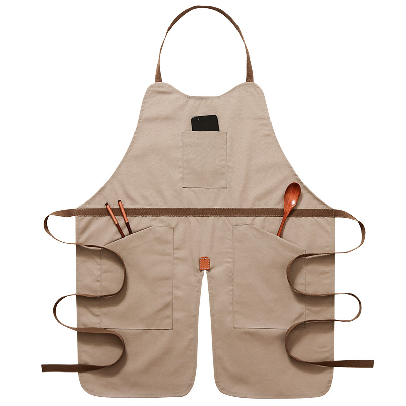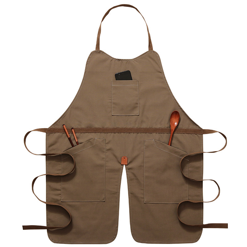 앞치마 캔버스 사용자 정의 로고 우유 차 커피 숍 레스토랑 매니큐어 남성과 여성 주방 베이킹 바지 자수 인쇄