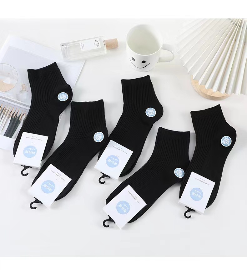 가을과 겨울 단색 낮은 양말 남성 더블 바늘 흑백 회색 5 점 짧은 양말 Liaoyuan 양말 도매