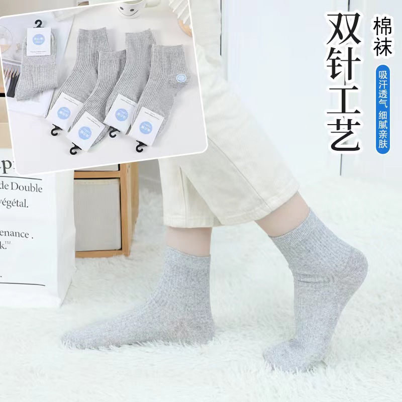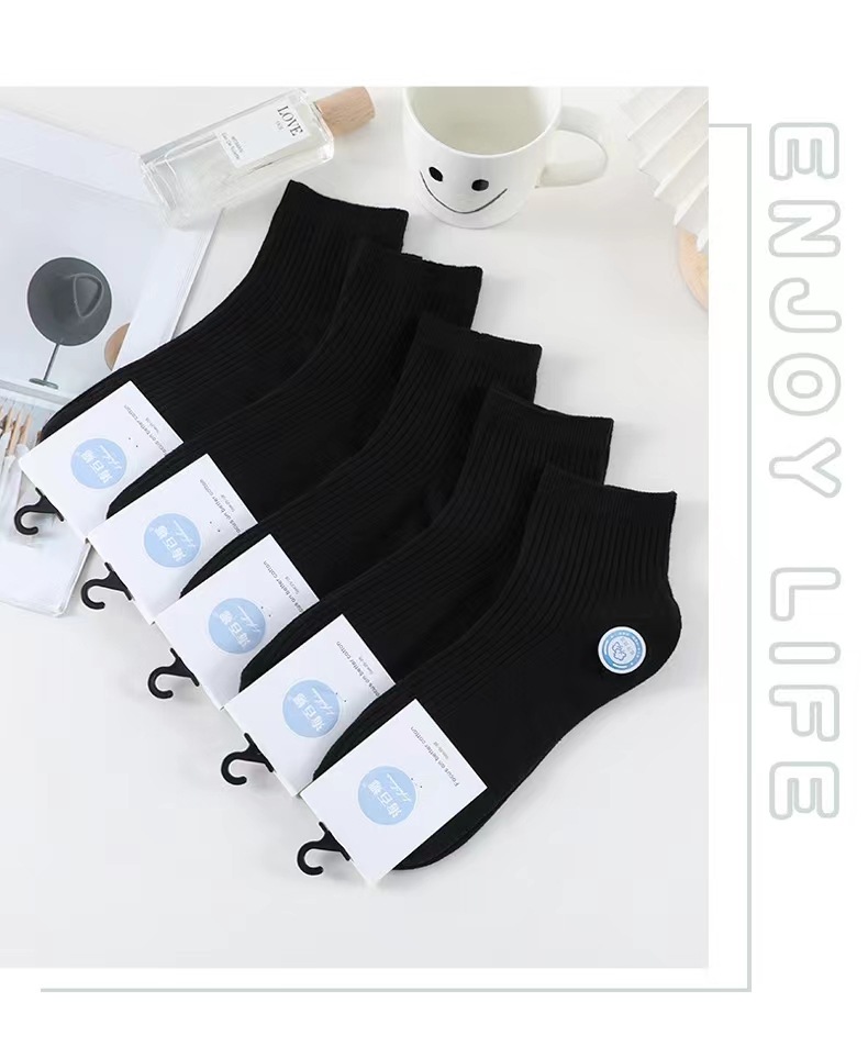 가을과 겨울 단색 낮은 양말 남성 더블 바늘 흑백 회색 5 점 짧은 양말 Liaoyuan 양말 도매스토어 가기