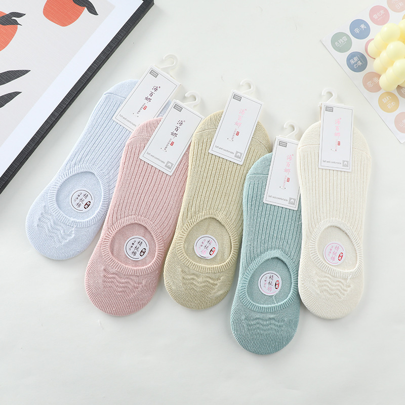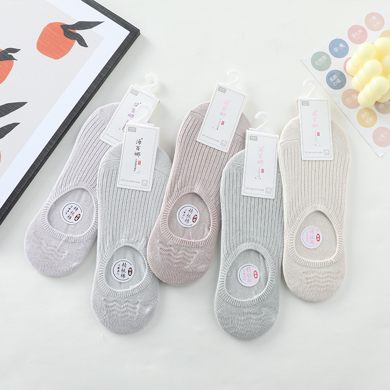 봄/여름 2024 새로운 더블 바늘 보이지 않는 양말 Haibaina 일본 수직 줄무늬 얕은 입 실리콘 캔디 컬러 여성용 양말스토어 가기
