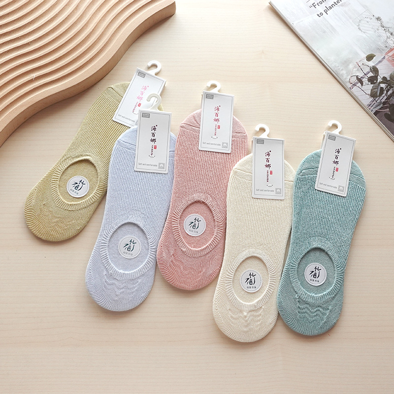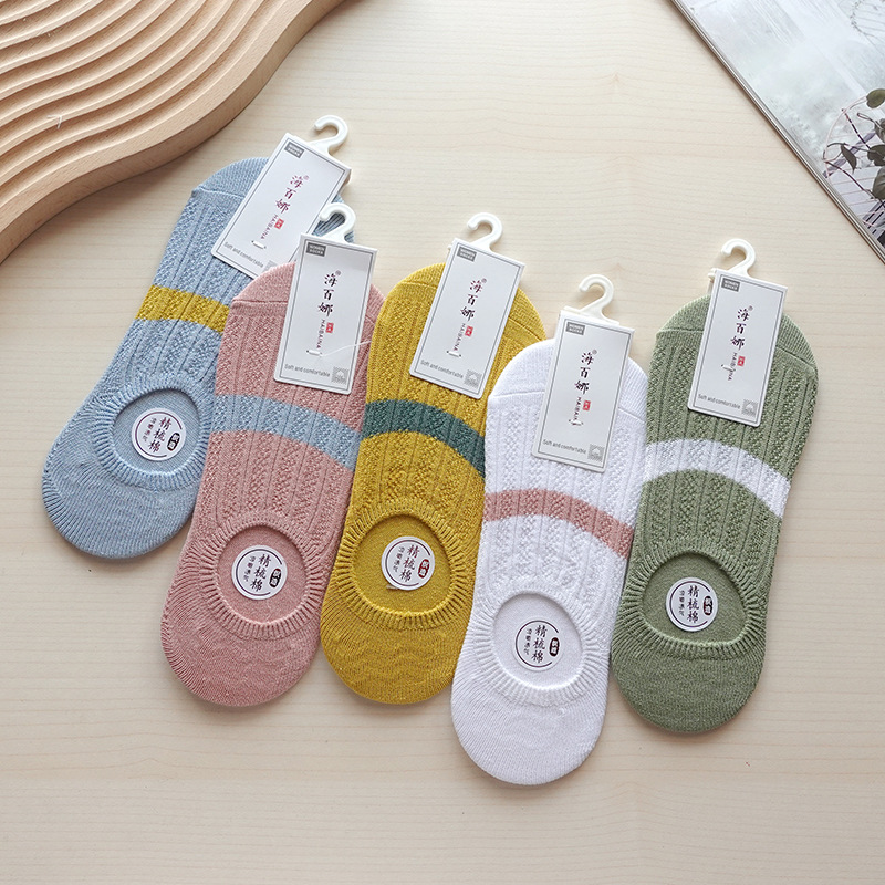 봄/여름 2024 새로운 더블 바늘 보이지 않는 양말 Haibaina 일본 수직 줄무늬 얕은 입 실리콘 캔디 컬러 여성용 양말