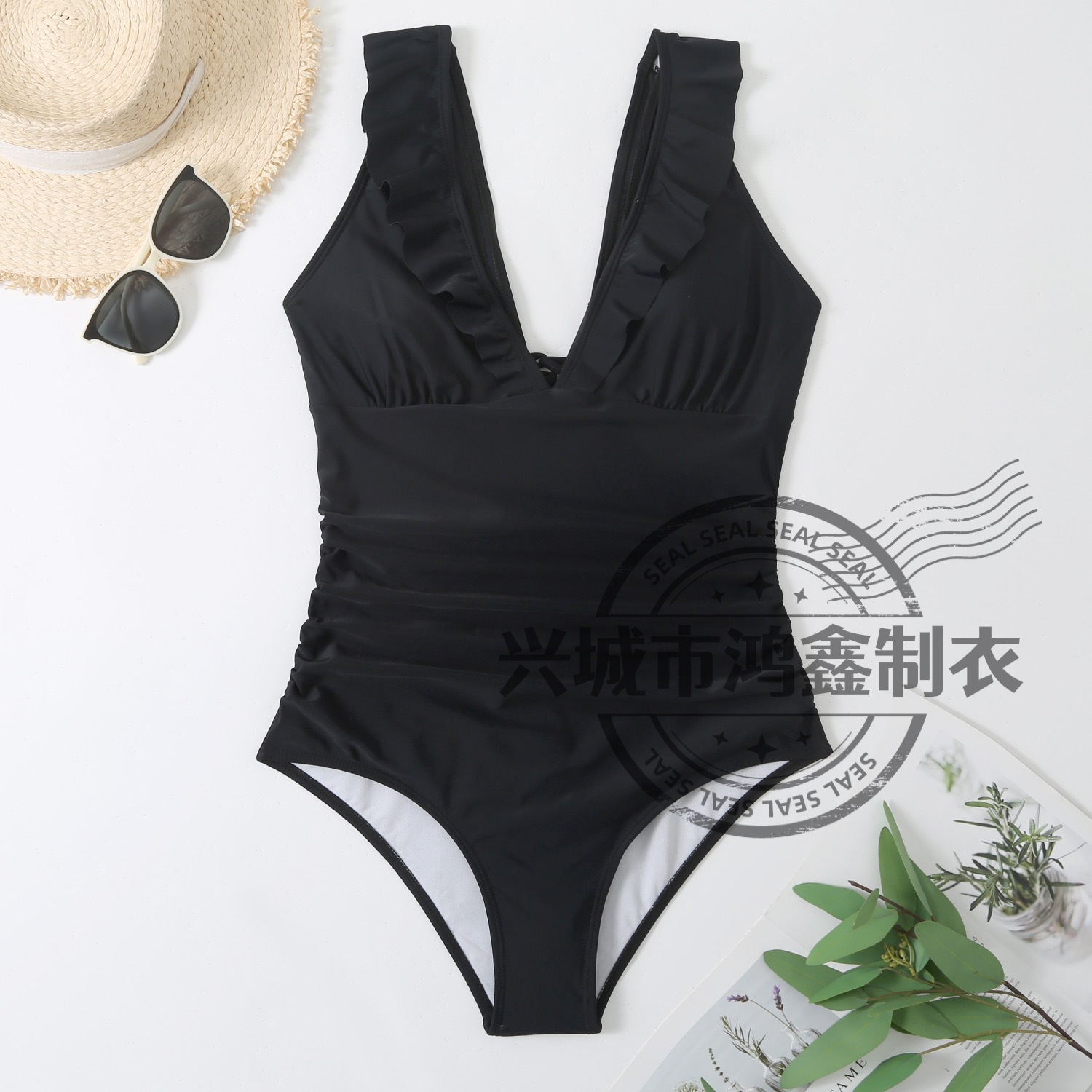 새로운 국경 간 대외 무역 비키니 아마존 단색 플래시 배꼽 커버 슬림 원피스 보수적 인 수영복 여성 비키니
