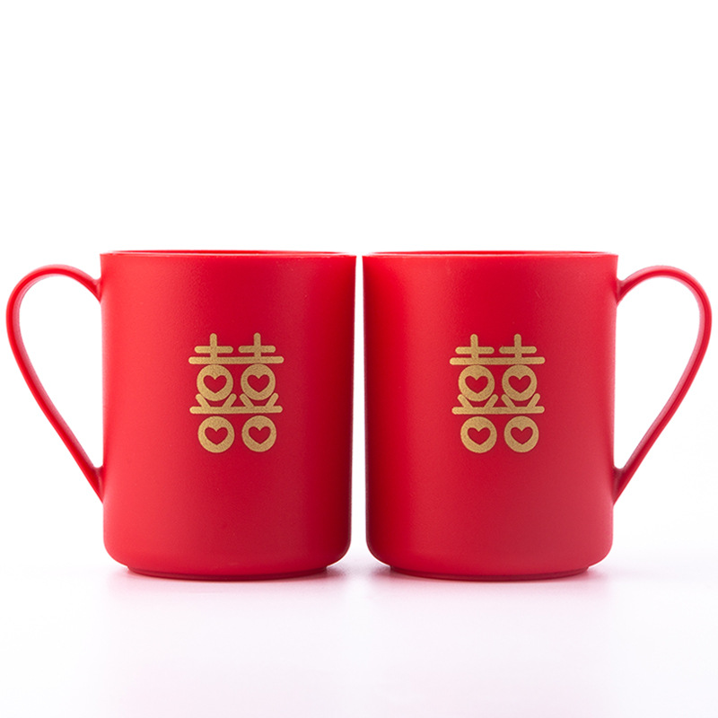 크리에이 티브 웨딩 용품 세면 용품 컵 세트 커플 이빨 컵 웨딩 칫솔질 머그 레드 플라스틱 치아 쌍