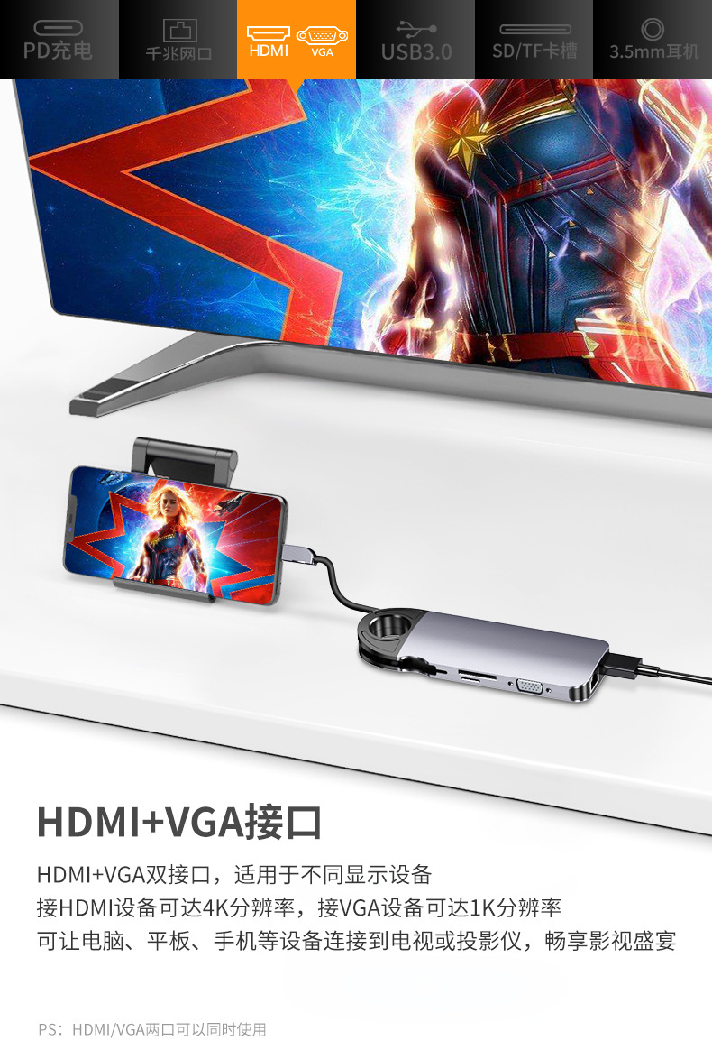 크로스 보더 타입-C 도킹 스테이션 10-in -1 hdmi + VGA 도킹 스테이션 기가비트 네트워크 카드 usb 변환 허브스토어 가기