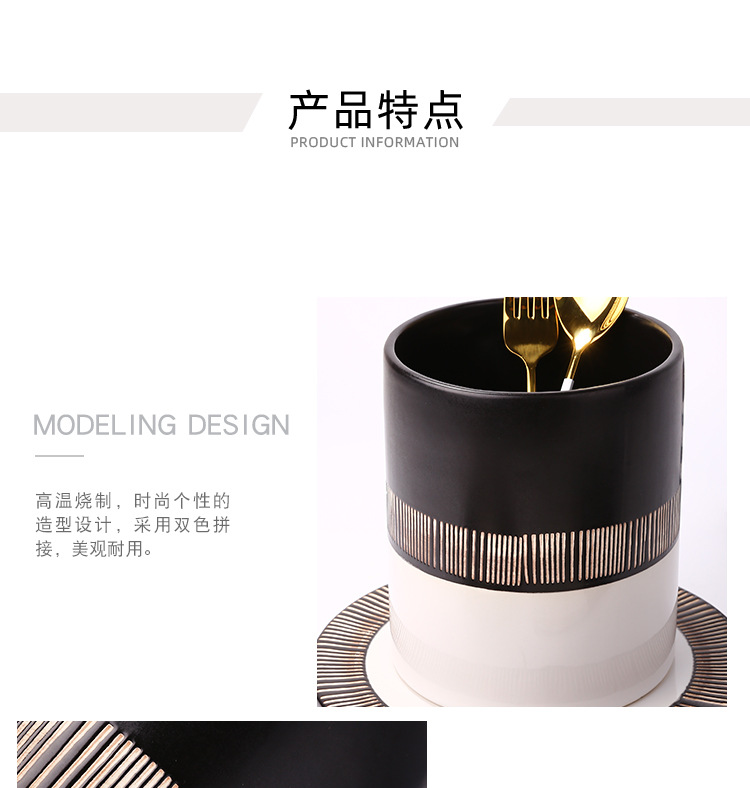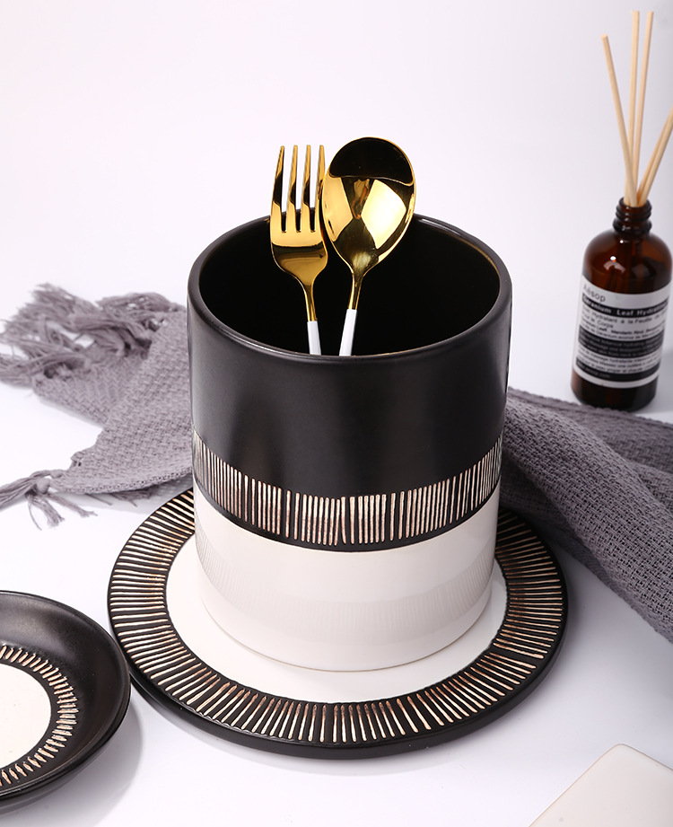 간단한 유럽식 주방 보관 항아리 가정용 다목적 세라믹 나이프 및 포크 젓가락 튜브 식탁 원형 보관 배럴