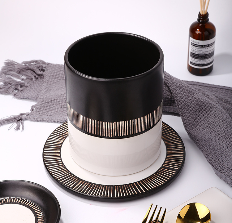 간단한 유럽식 주방 보관 항아리 가정용 다목적 세라믹 나이프 및 포크 젓가락 튜브 식탁 원형 보관 배럴스토어 가기