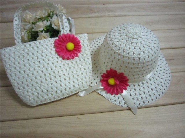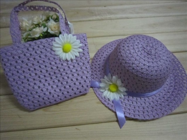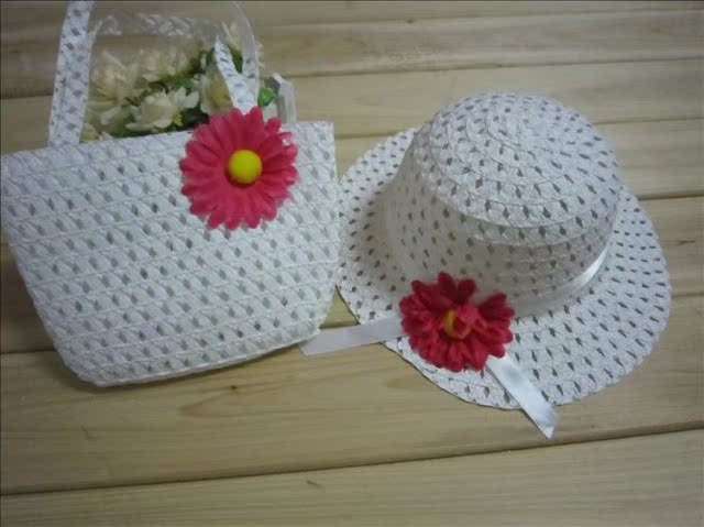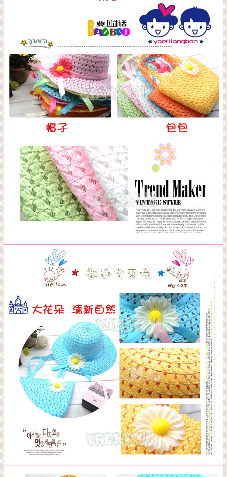 대외 무역 어린이 밀짚모자, 어린이용 태양모자, 아기 모자 및 가방 2종 세트, 공장 직판스토어 가기