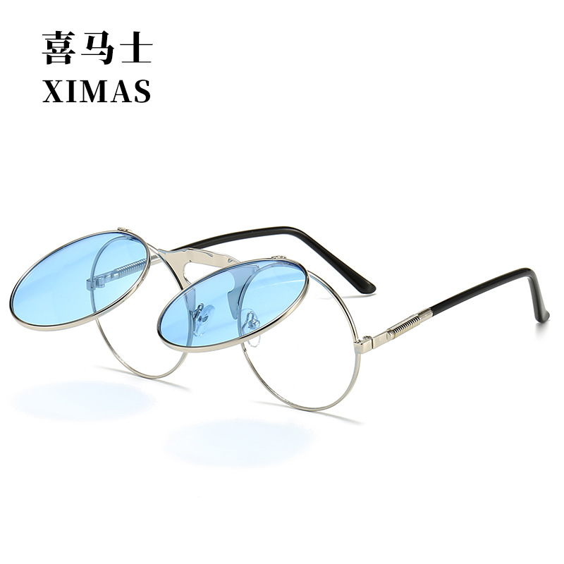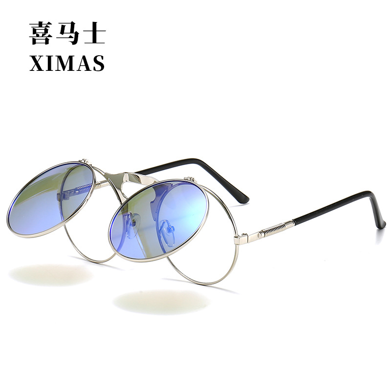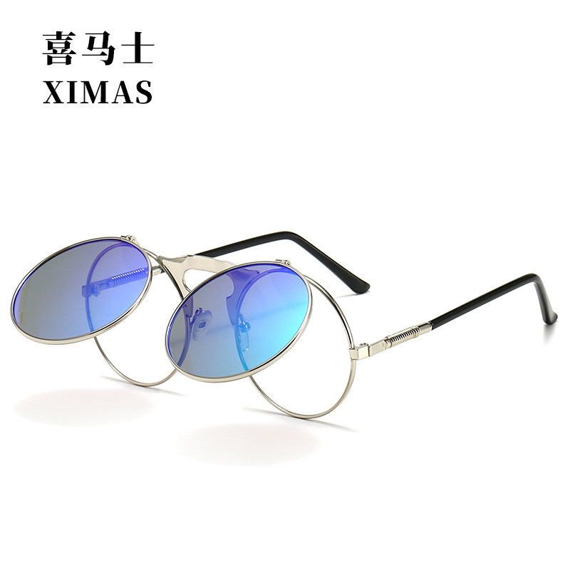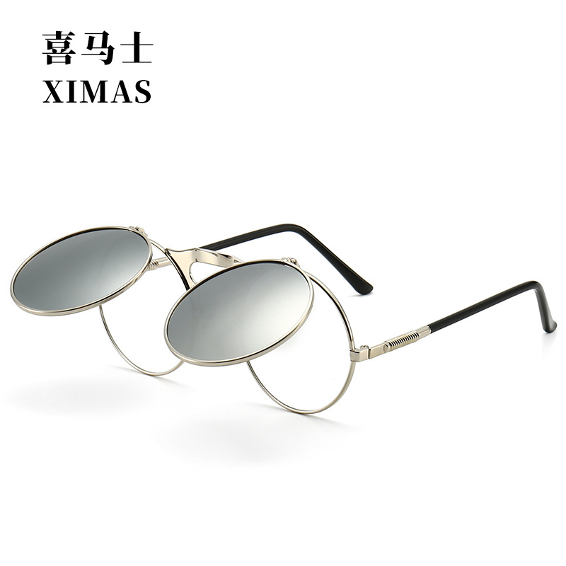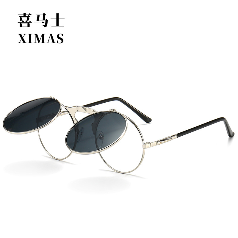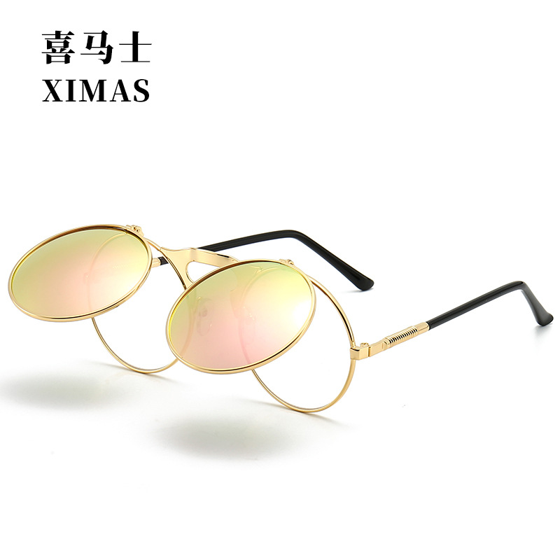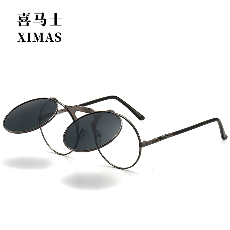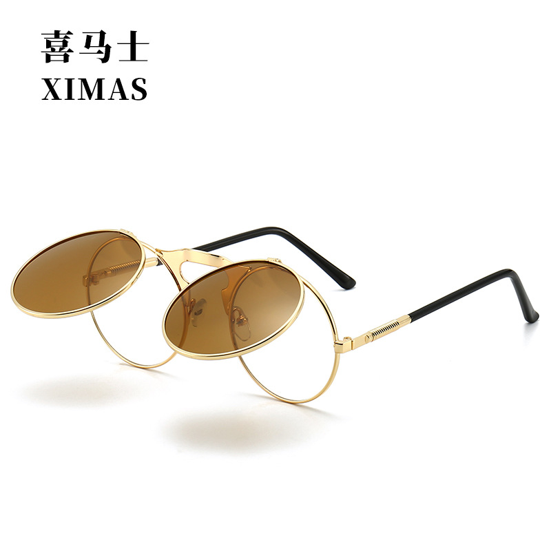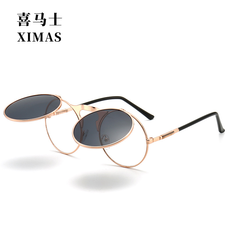 새로운 빈티지 메탈 펑크 스팀 플립 선글라스 플립 선글라스 남성과 여성 맞춤형 선글라스 3057