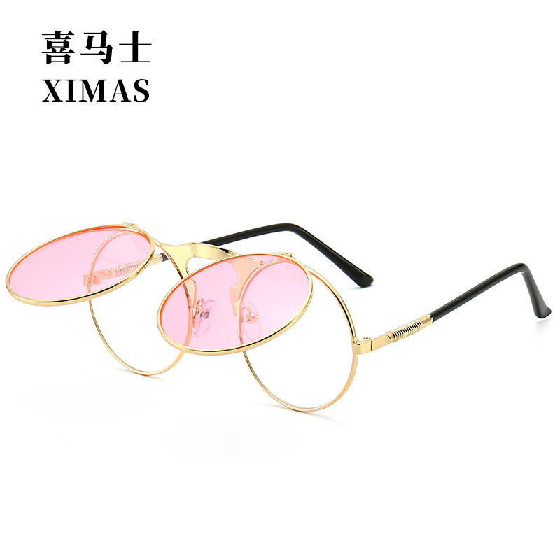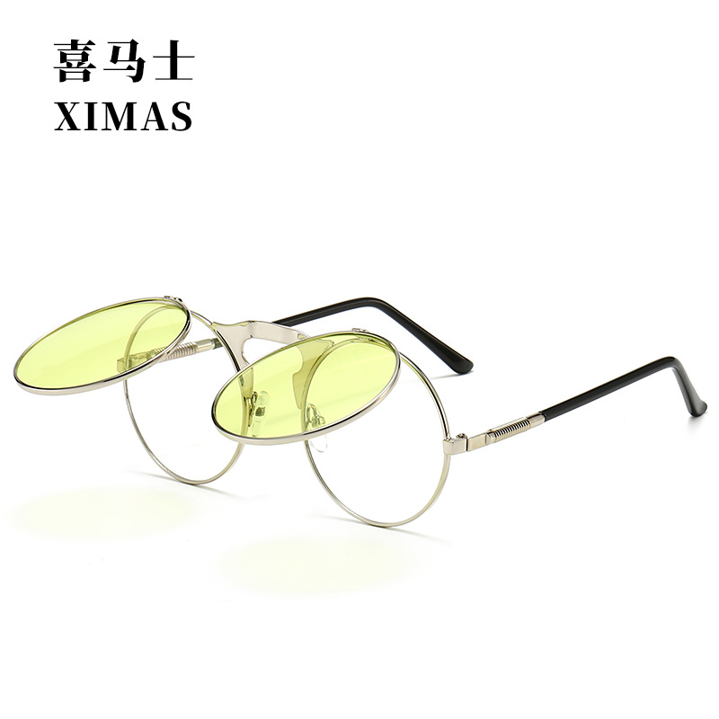 새로운 빈티지 메탈 펑크 스팀 플립 선글라스 플립 선글라스 남성과 여성 맞춤형 선글라스 3057스토어 가기