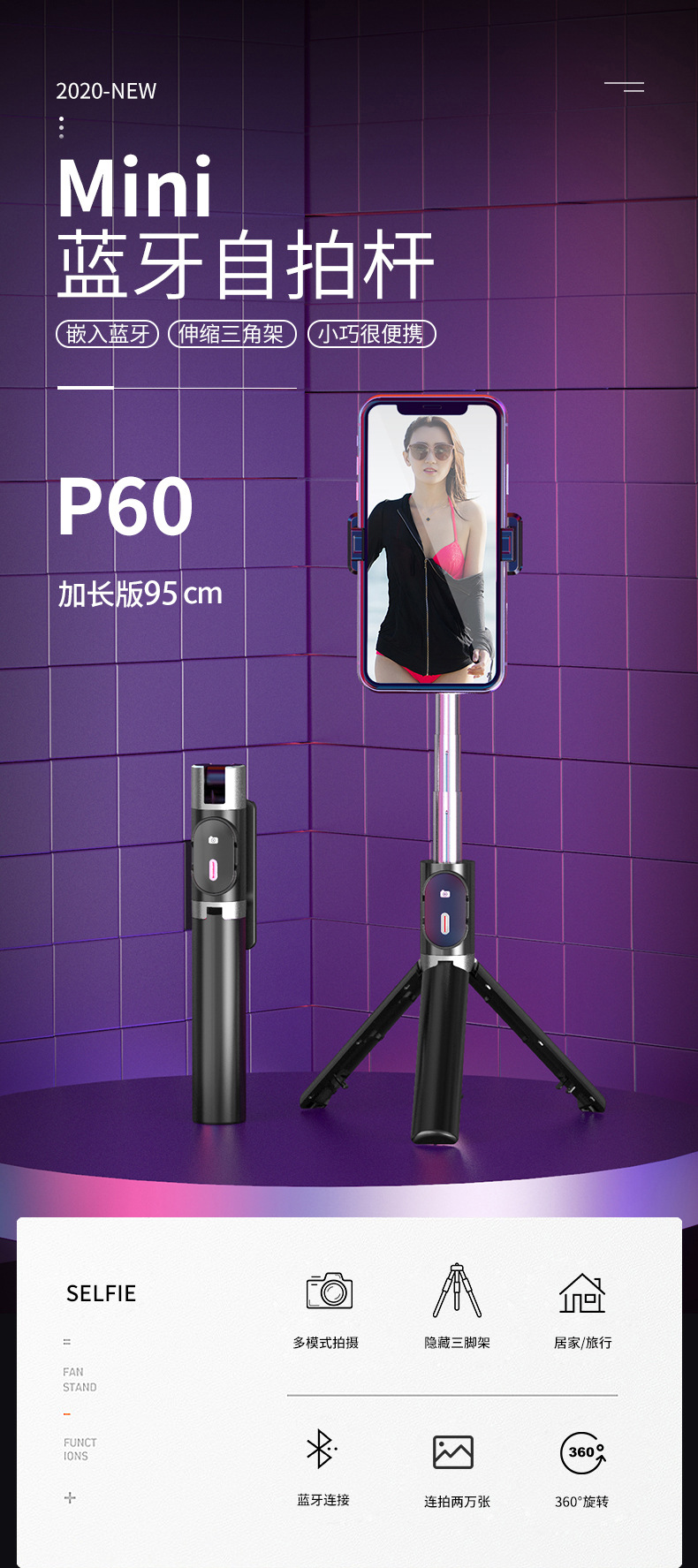 P60PLUS 블루투스 셀카봉 스테인레스 스틸 미니 휴대용 여행 셀카 폰 홀더 블루투스 셀카봉스토어 가기