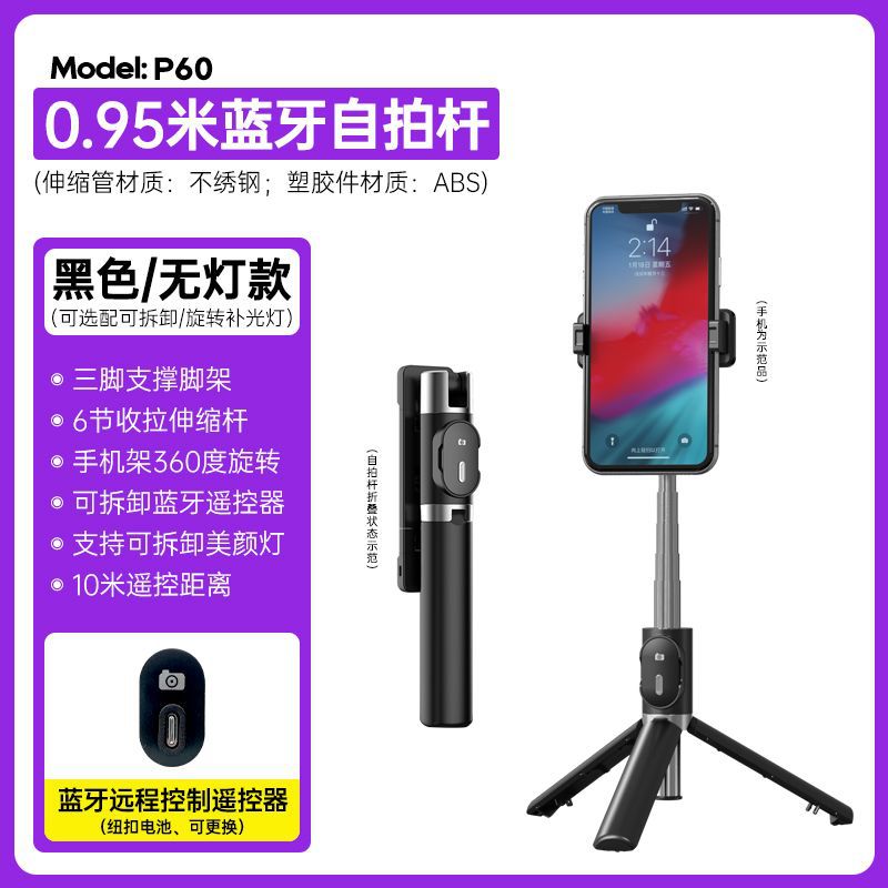 P60PLUS 블루투스 셀카봉 스테인레스 스틸 미니 휴대용 여행 셀카 폰 홀더 블루투스 셀카봉
