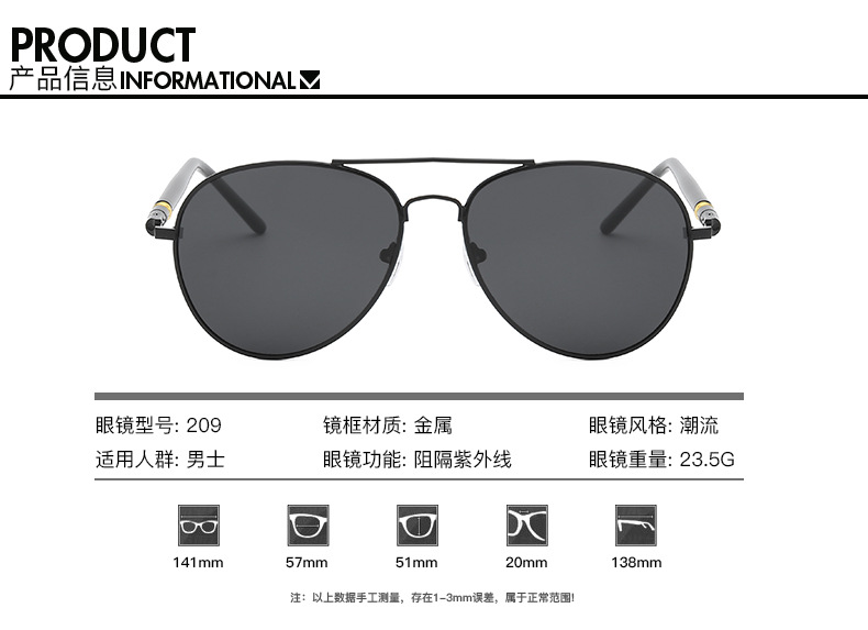 새로운 남성용 편광 선글라스 209 메탈 스프링 레그 선글라스 유럽과 미국 레트로 편광 선글라스스토어 가기