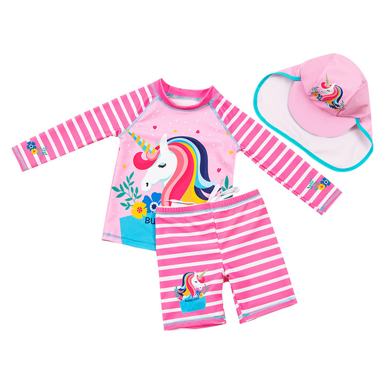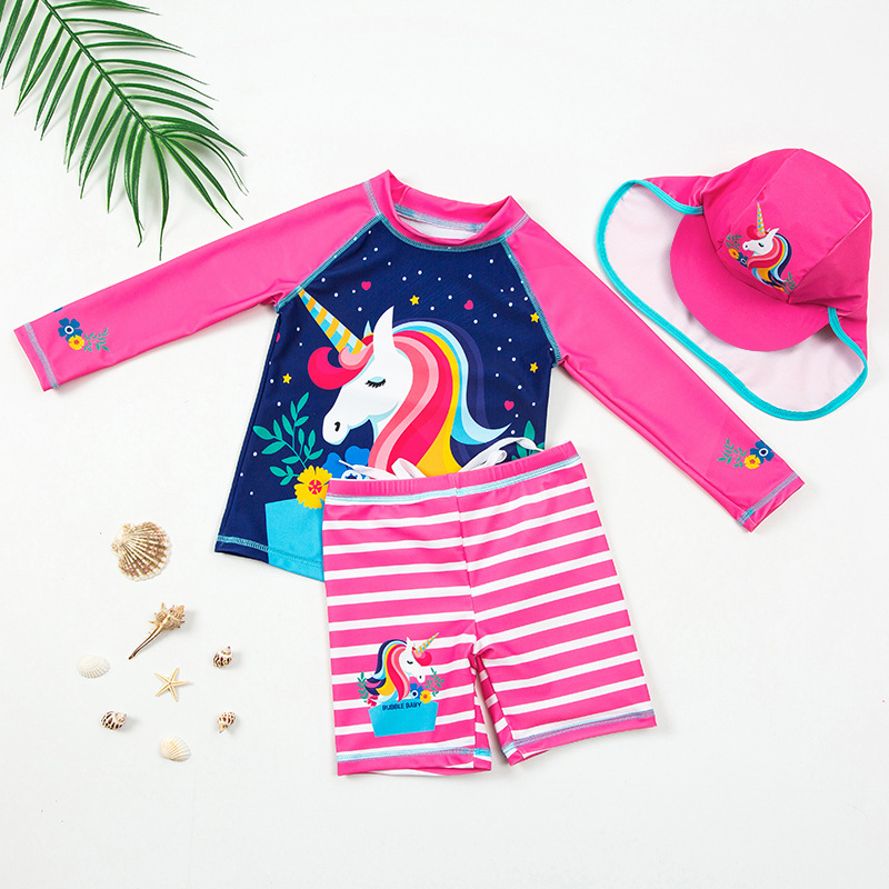 어린이용 스플릿 수영복, 어린 소녀용 스플릿 수영복, 소녀용 스플릿 긴팔 수영복, 만화 유니콘 수영복
