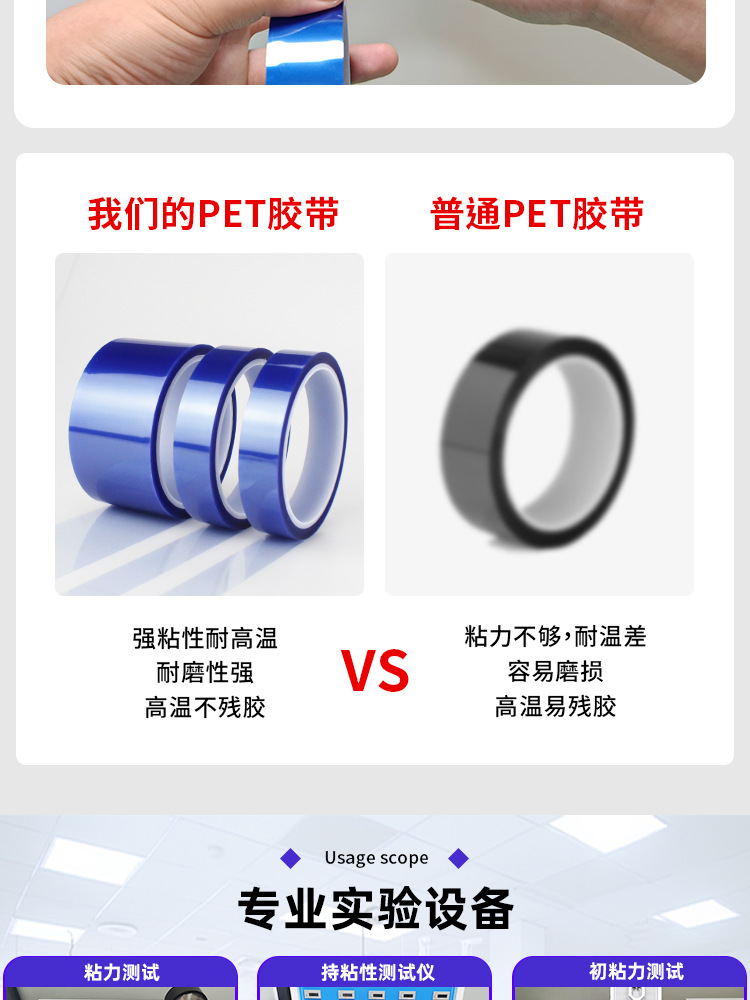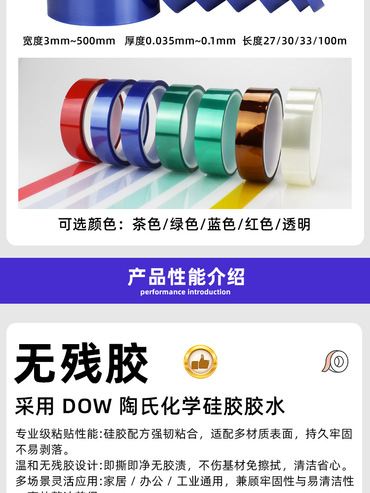 재고 도매 PET 절연 점착 테이프 비마킹 고점착 비탈구밍 고열 내식성 청테이프