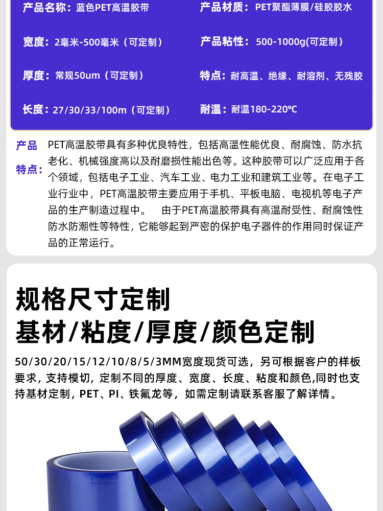 재고 도매 PET 절연 점착 테이프 비마킹 고점착 비탈구밍 고열 내식성 청테이프스토어 가기