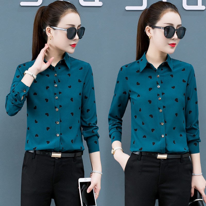 봄 가을 신상품 프린트 옐로우 레드 화이트 셔츠 여성용 긴팔 쉬폰 셔츠 탑 여성용 한국식 슬림핏 슬림스토어 가기