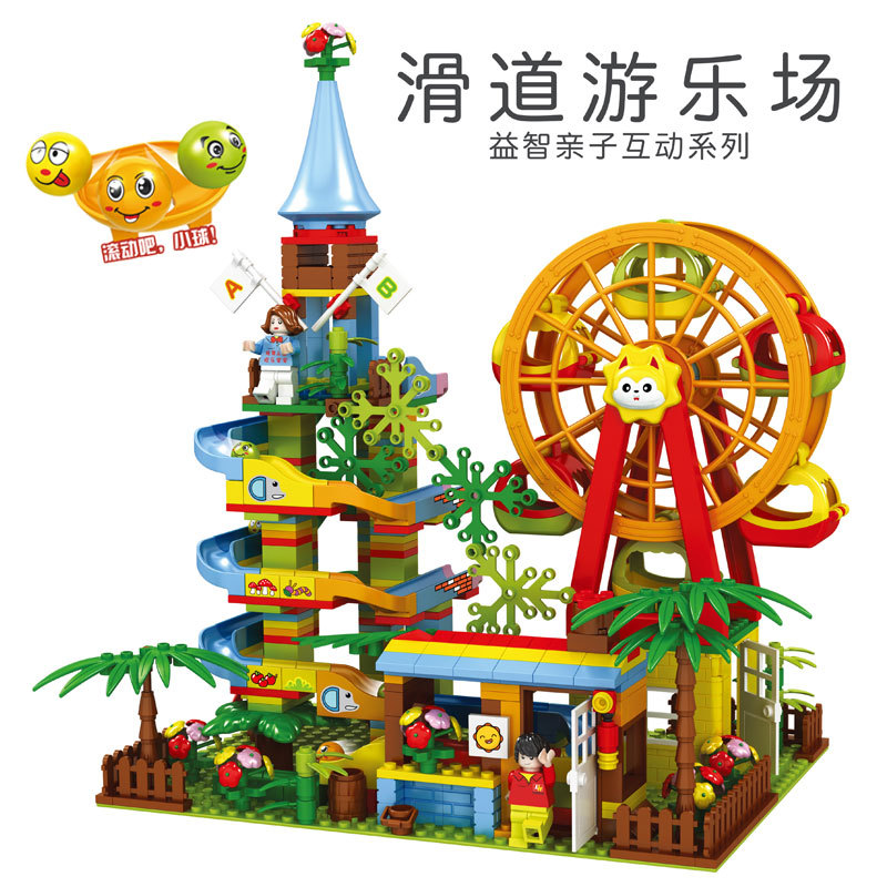 어린이 공 빌딩 블록 469 작은 입자 슬라이드 놀이터 조립 소년과 소녀를위한 가변 퍼즐 장난감스토어 가기