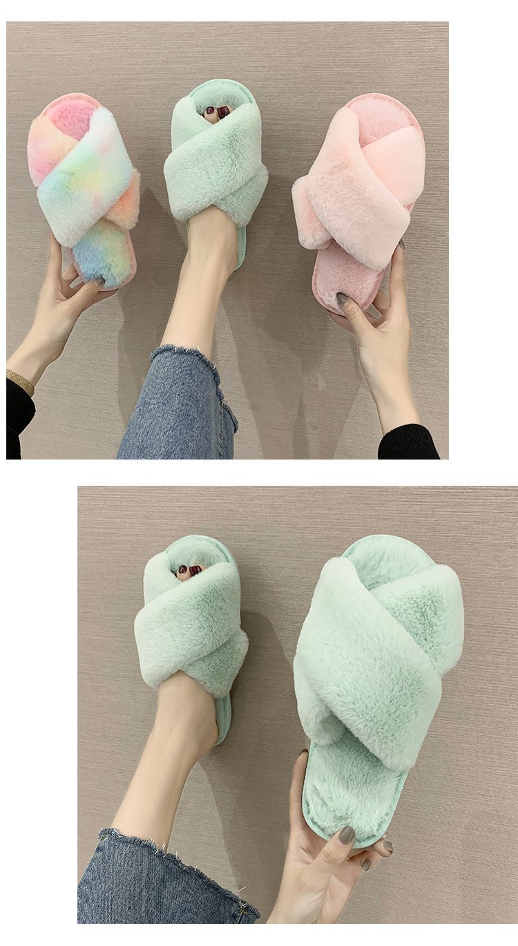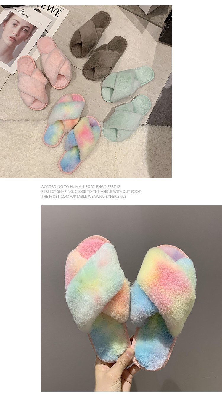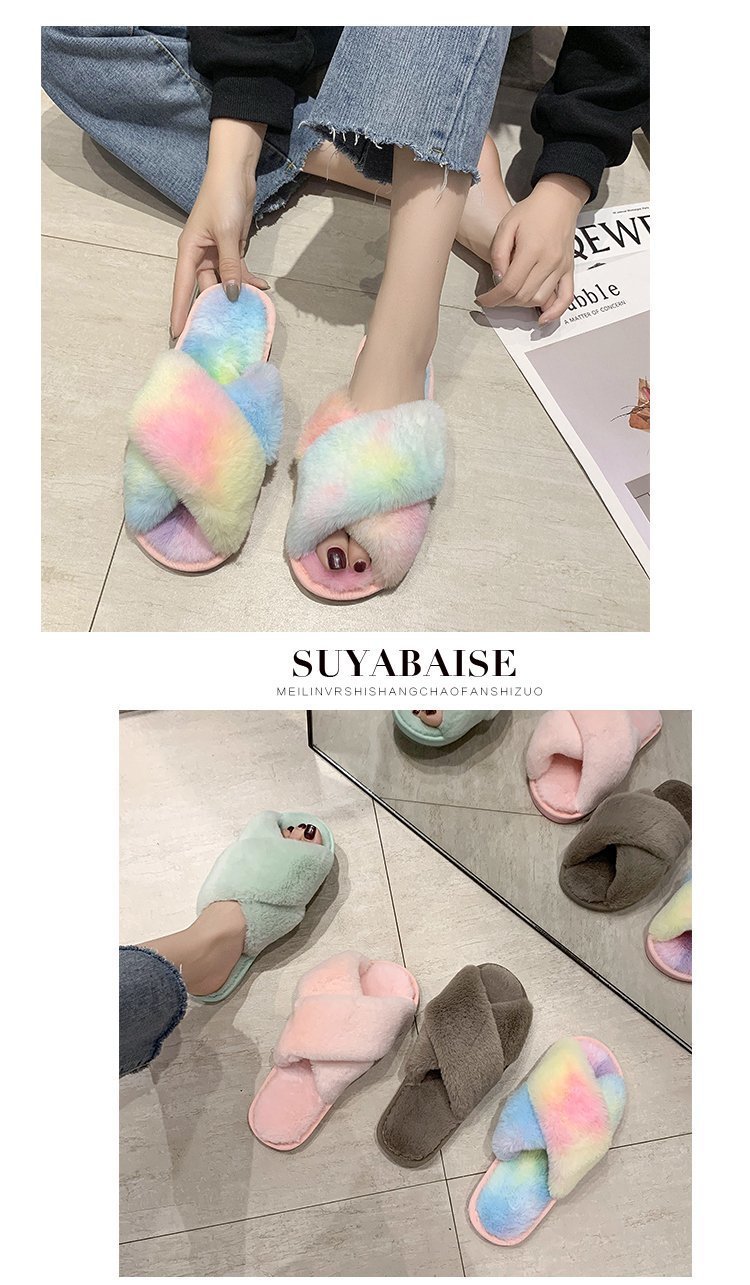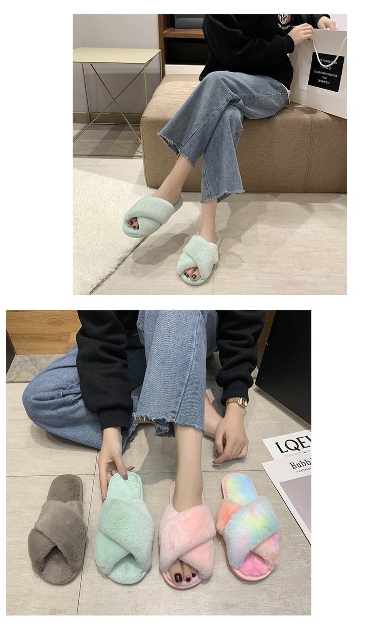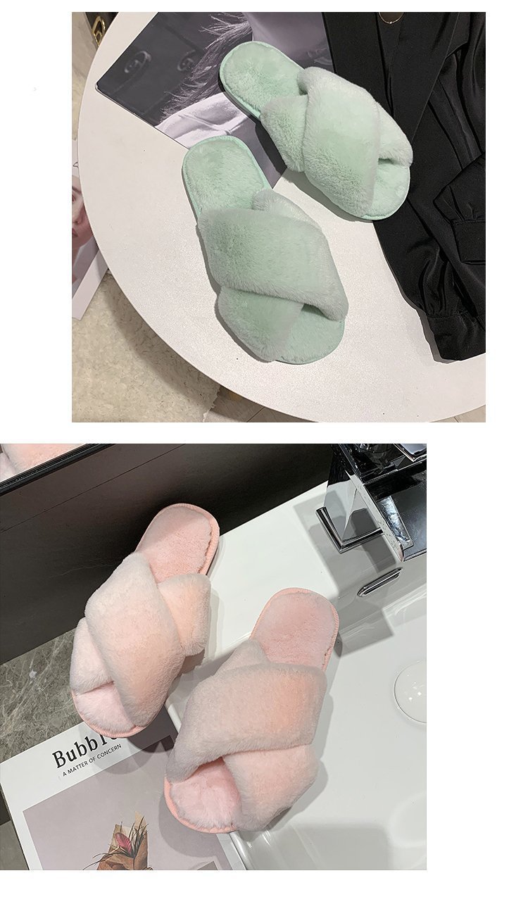 여성 신발 2025 봄 새로운 패션 그라데이션 모피 슬리퍼 여성 한국어 버전 대형 벨벳 여성 캐주얼 면 슬리퍼스토어 가기