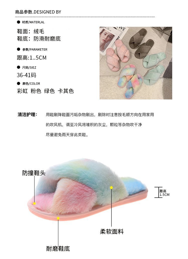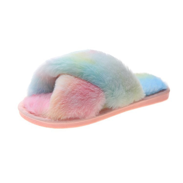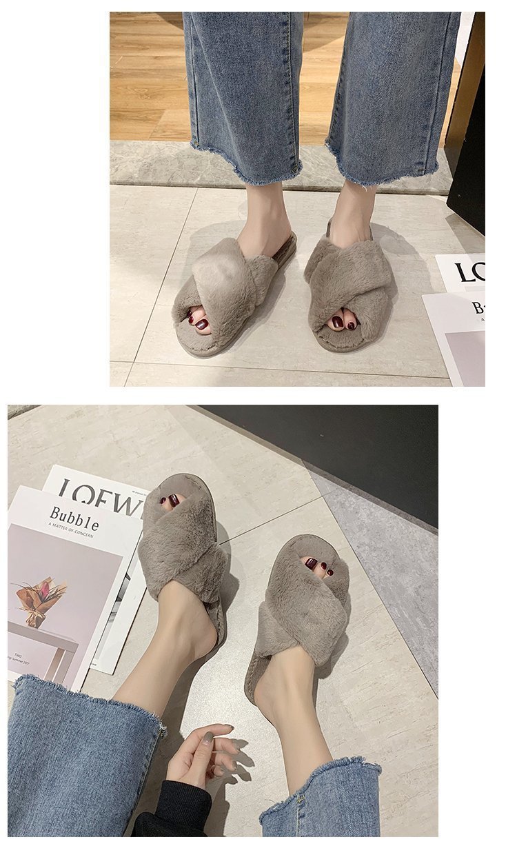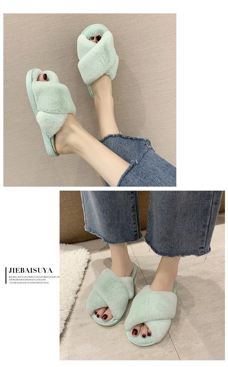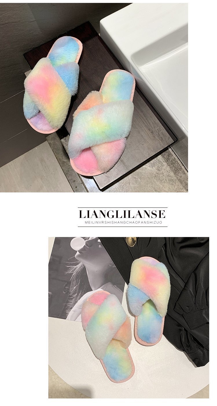 여성 신발 2025 봄 새로운 패션 그라데이션 모피 슬리퍼 여성 한국어 버전 대형 벨벳 여성 캐주얼 면 슬리퍼스토어 가기