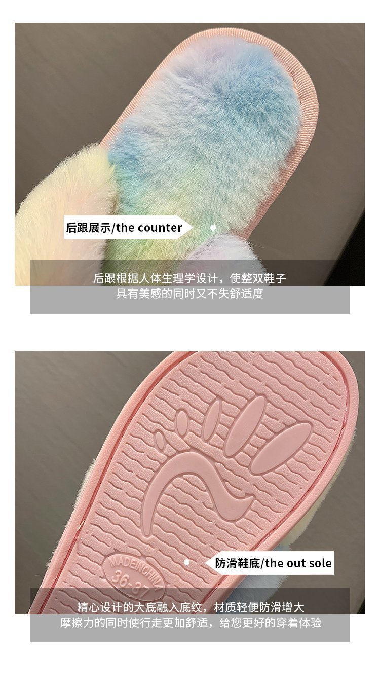 여성 신발 2025 봄 새로운 패션 그라데이션 모피 슬리퍼 여성 한국어 버전 대형 벨벳 여성 캐주얼 면 슬리퍼