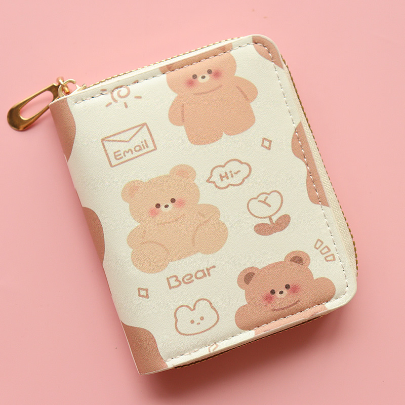 2025 새로운 패션 만화 학생 작고 귀여운 곰 지퍼 짧은 여성 지퍼 지갑 동전