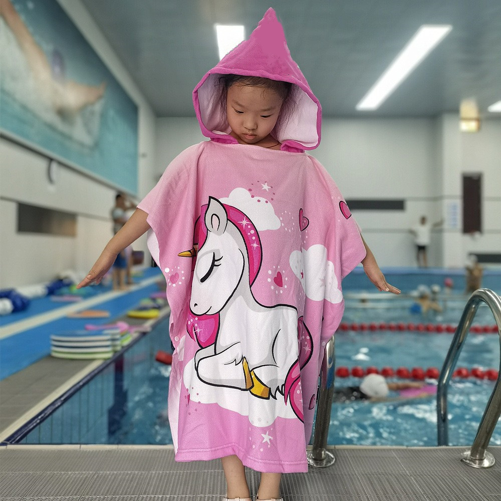 • 3 차원 핑크 유니콘 업그레이드 목욕 타월 케이프