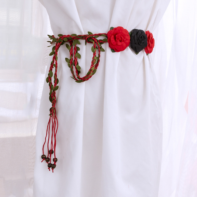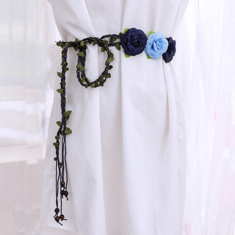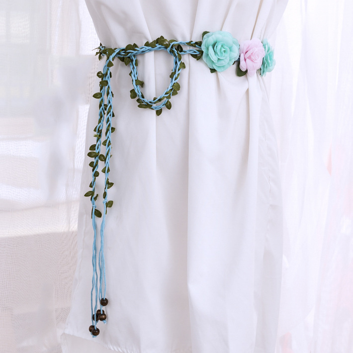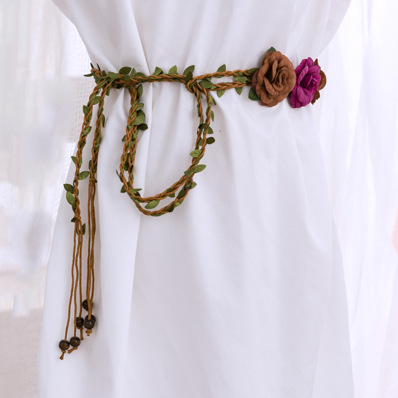 한국 스타일 여성의 새로운 짠 벨트 세 꽃 왁스 로프 짠 빈티지 허리 체인 모든 일치 여성의 원피스 얇은 벨트스토어 가기