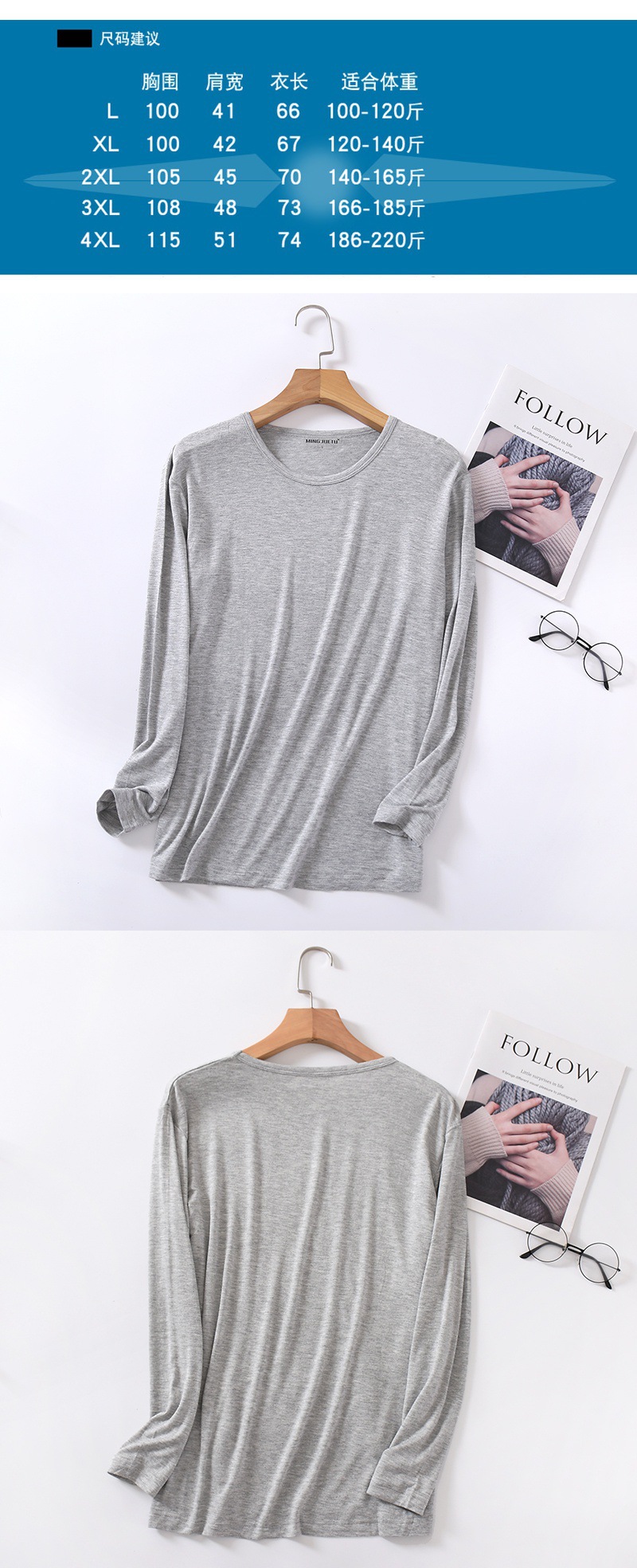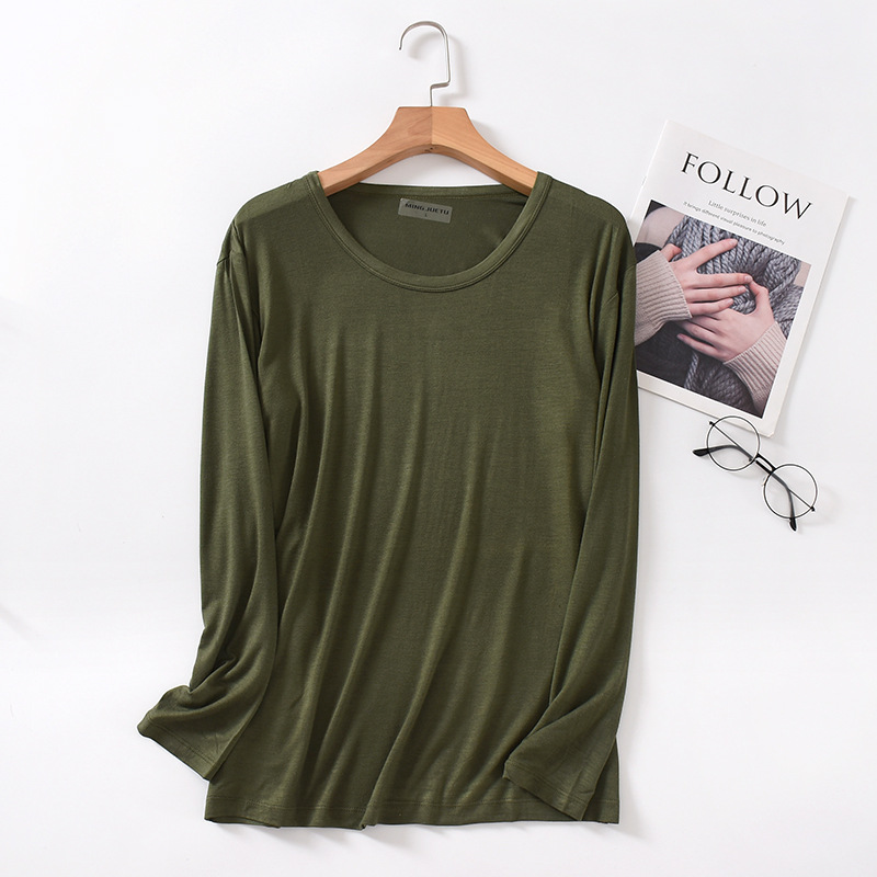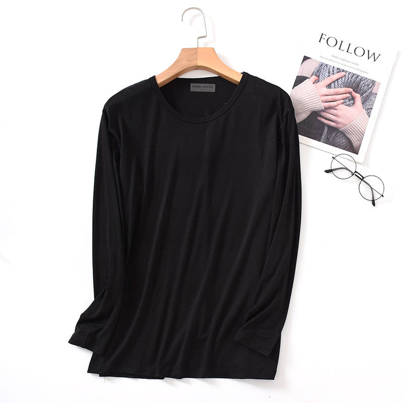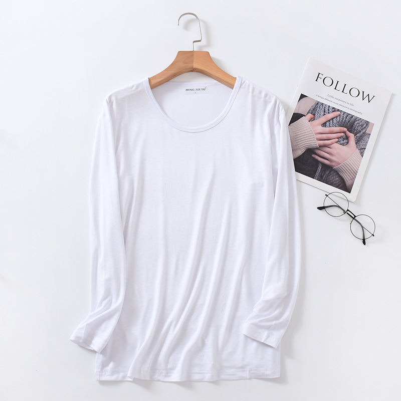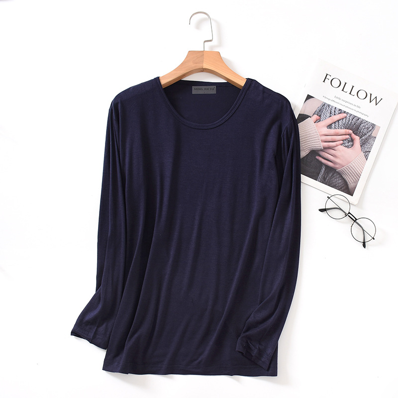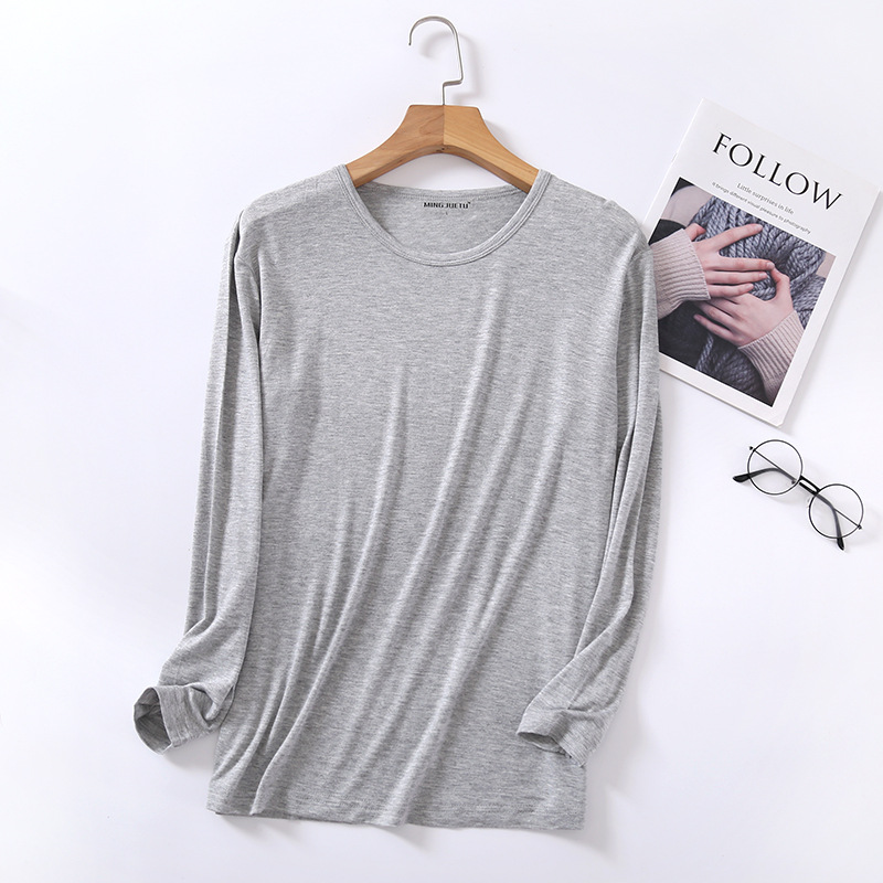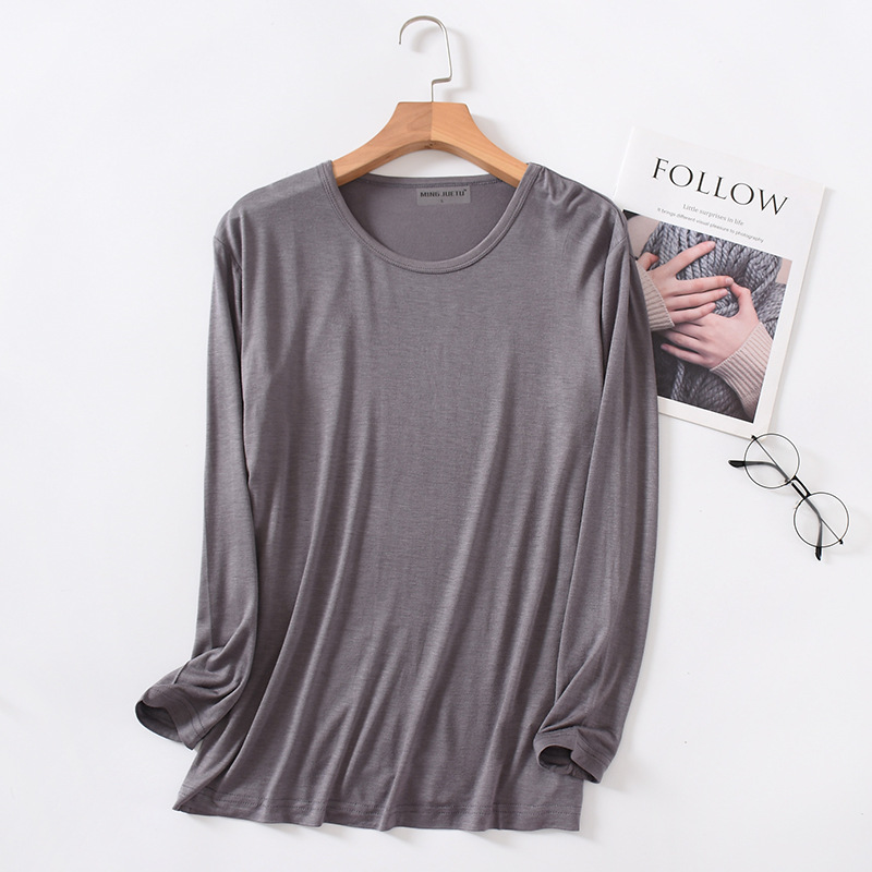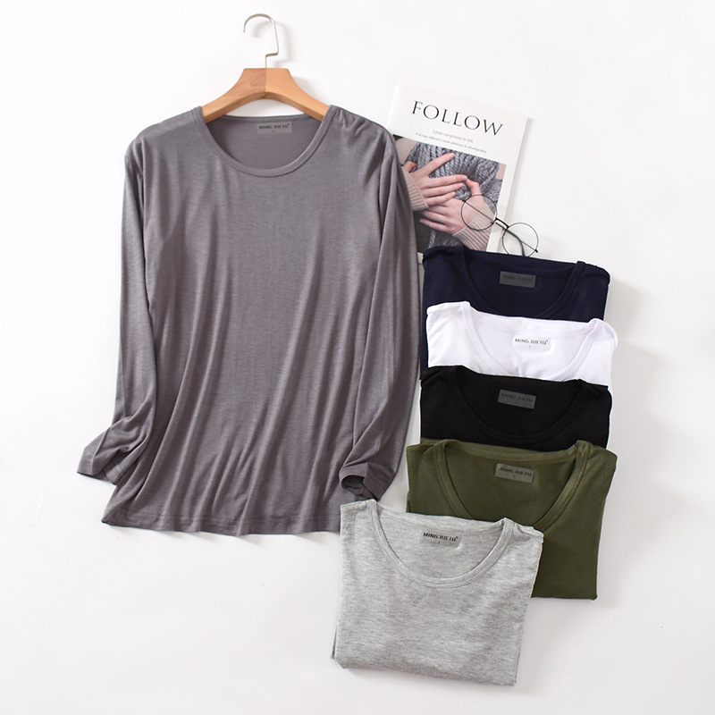 봄과 가을 남자의 모달 긴팔 티셔츠 느슨한 가정 의류 캐주얼 탑 베이스 셔츠 플러스 사이즈 잠옷 단일 조각스토어 가기