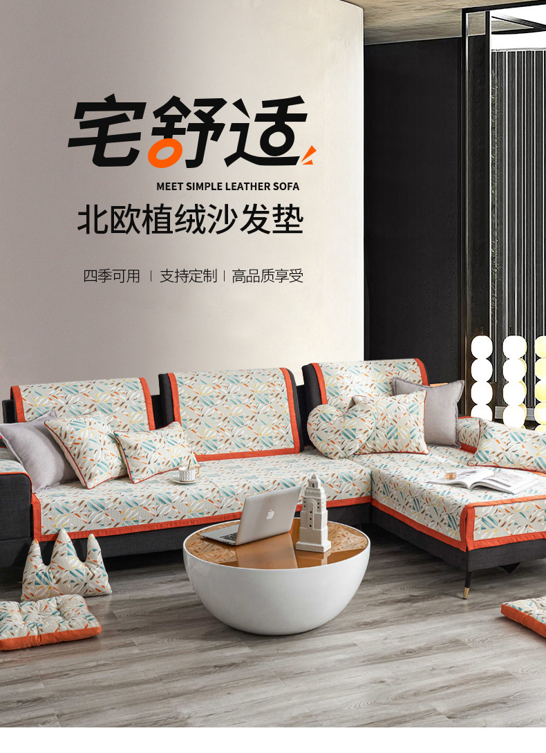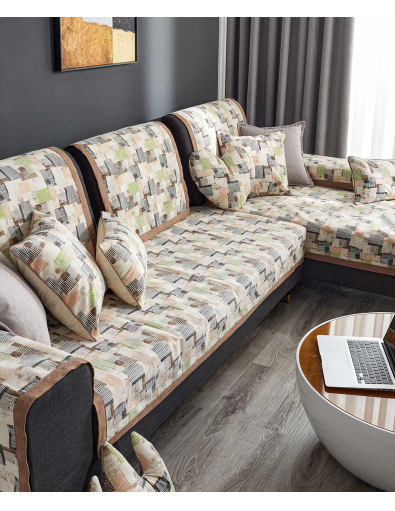 심플 모던 플로킹 미끄럼 방지 소파 쿠션 사계절 유니버설 미끄럼 방지 풀커버 쿠션 소파 커버 타월스토어 가기