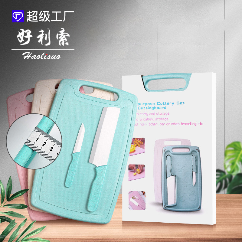 Hailisuo 세라믹 주방 칼 도마 2-in-1 밀 밀짚 도마 가정용 기숙사 스테인레스 스틸 세트 과일 칼
