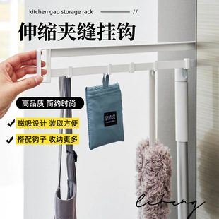 可伸缩缝隙挂钩免打孔厨房橱柜置物架冰箱侧挂抽拉磁吸收纳架