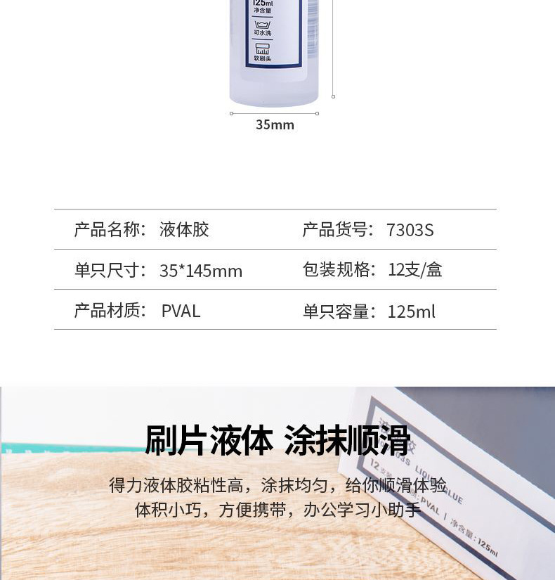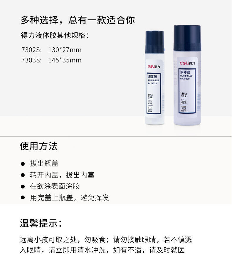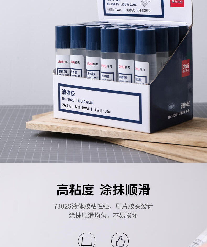 델리 7302S/7303s 브러쉬 액체 접착제 사무실 학생 투명 액체 접착제 보석 재료 문구스토어 가기