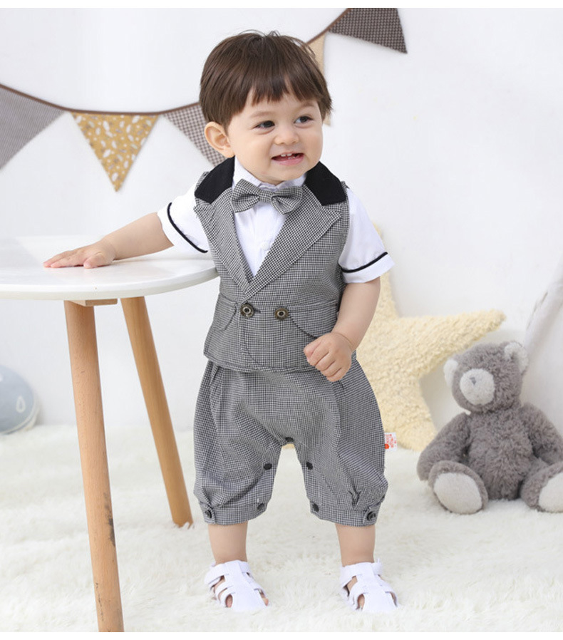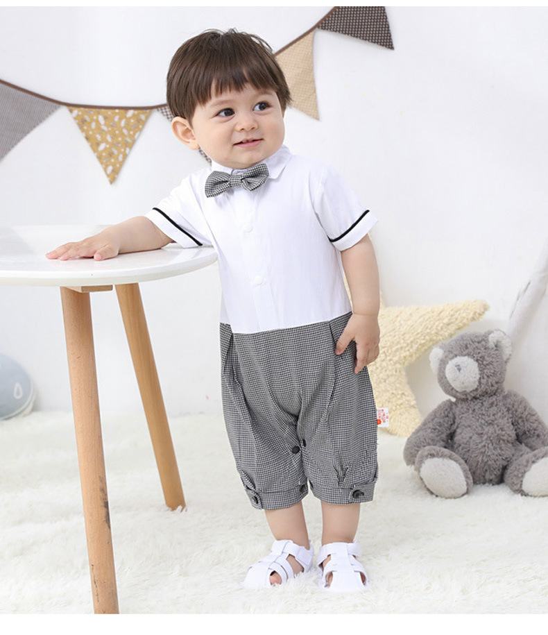 대외 무역 아동복 도매 여름 반팔 투피스 의류 등산 의류 아기 영국 신사 가방 방귀 아기 점프 슈트