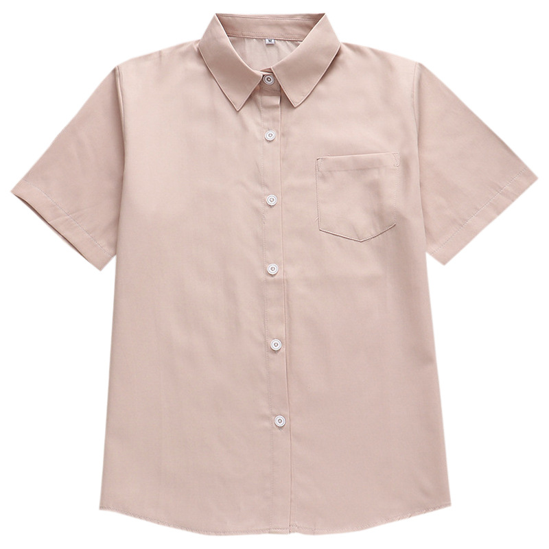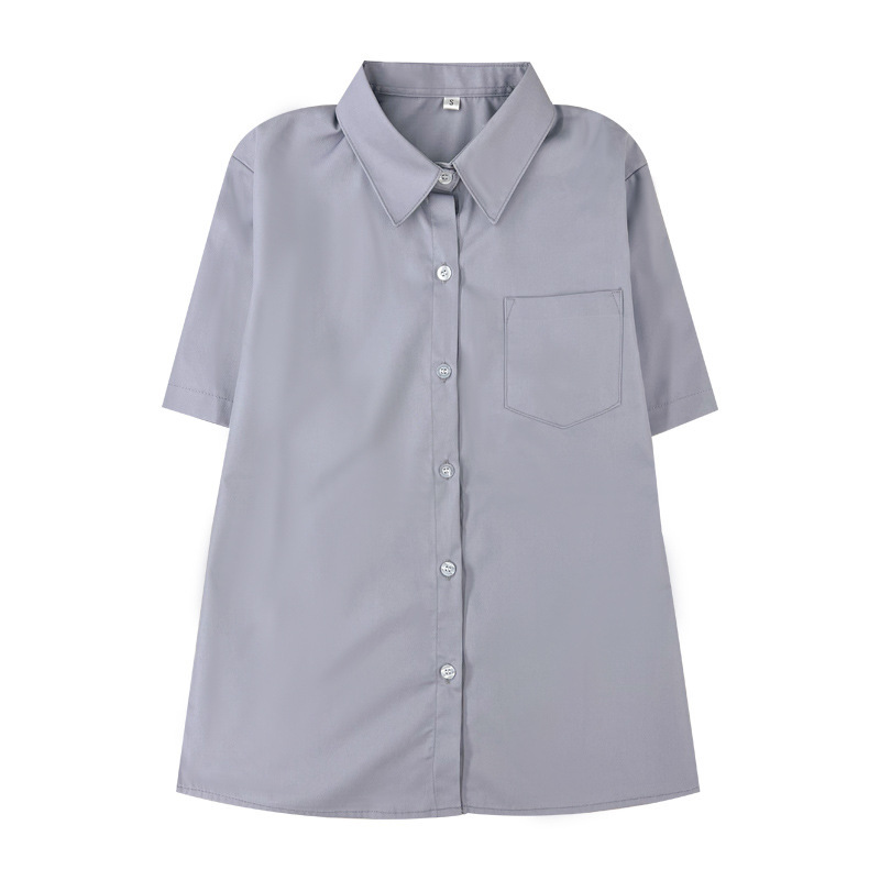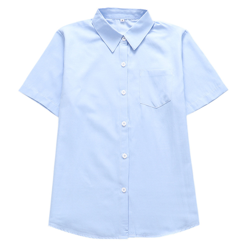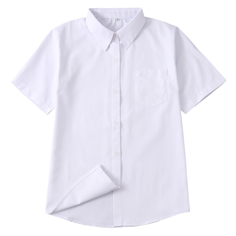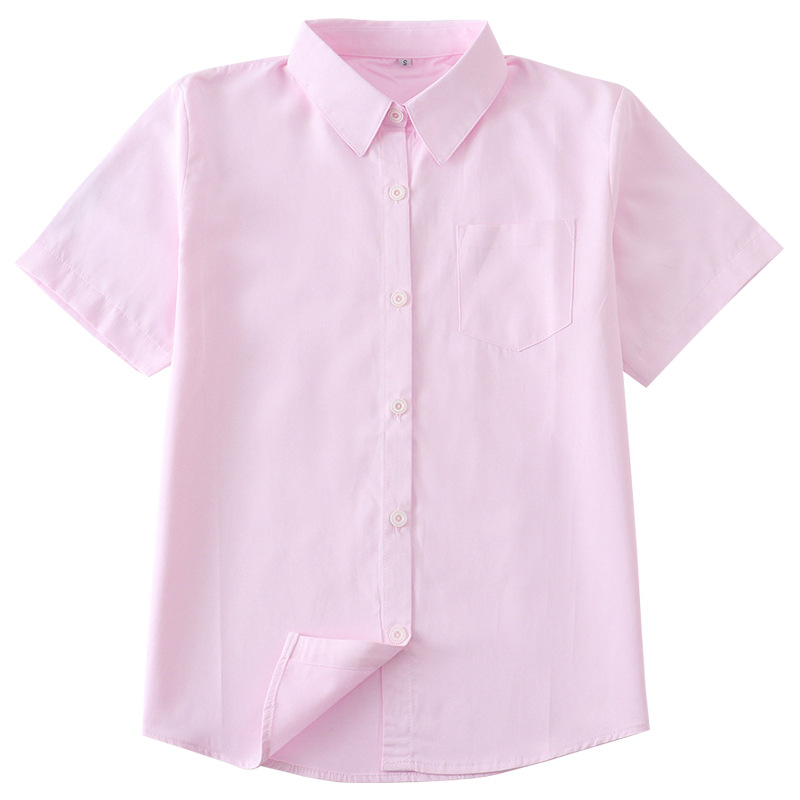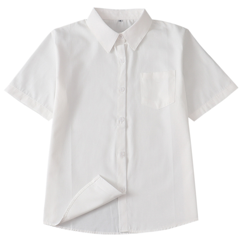 공장 재고 도매 JK 유니폼 뾰족한 칼라 짧은 소매 기본 셔츠 캐주얼 블라우스 흰색 바지 여름스토어 가기
