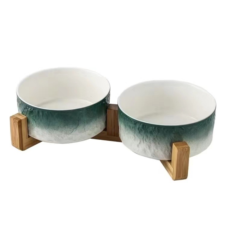 북유럽 고양이 그릇 세라믹 마시는 애완 동물 그릇 개 그릇 더블 그릇 창조적 인 대나무와 나무 용품 안티 노크 고양이 먹이 그릇