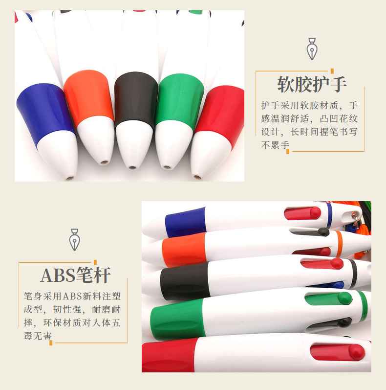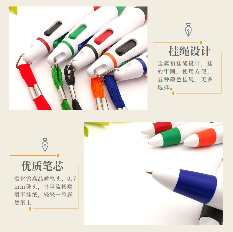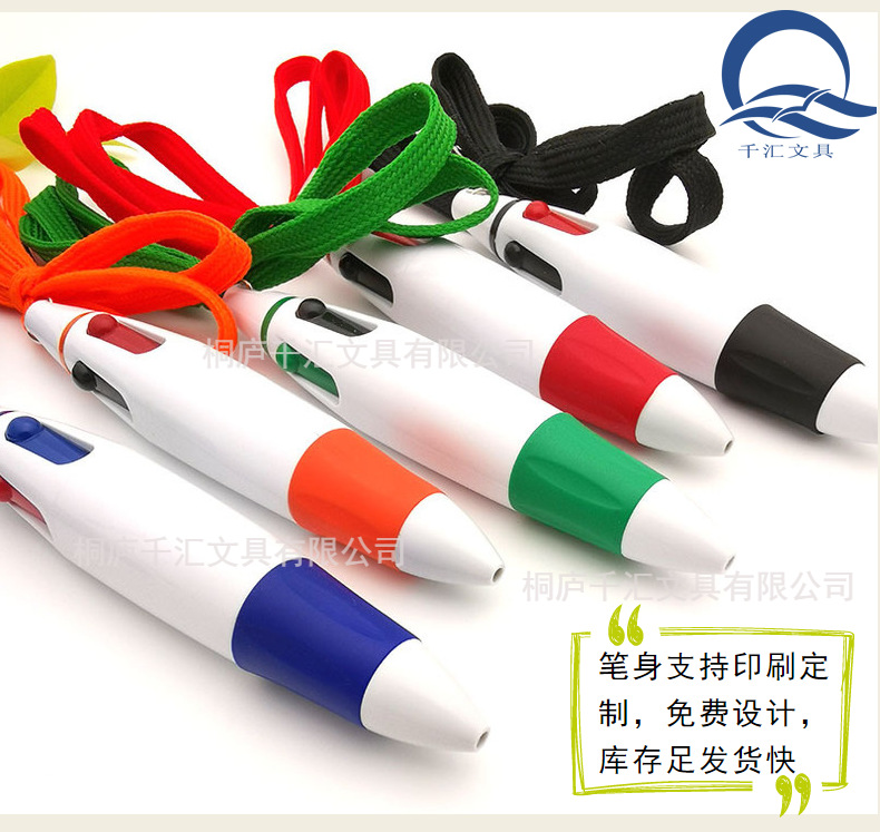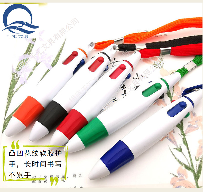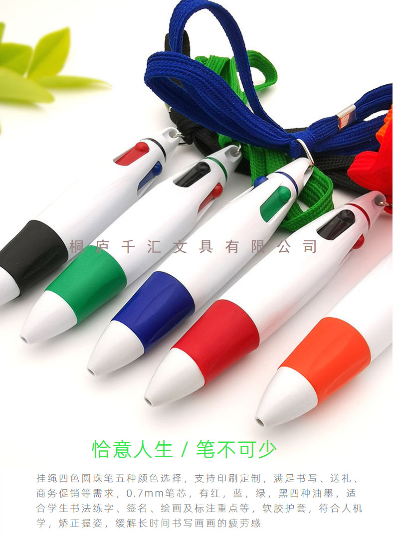 창의적인 끈이 달린 4색 볼펜, 멀티 컬러 펜, 4색 인쇄, 분실 방지 휴대용 펜, 마킹 펜, 휴대용