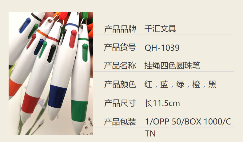 창의적인 끈이 달린 4색 볼펜, 멀티 컬러 펜, 4색 인쇄, 분실 방지 휴대용 펜, 마킹 펜, 휴대용스토어 가기