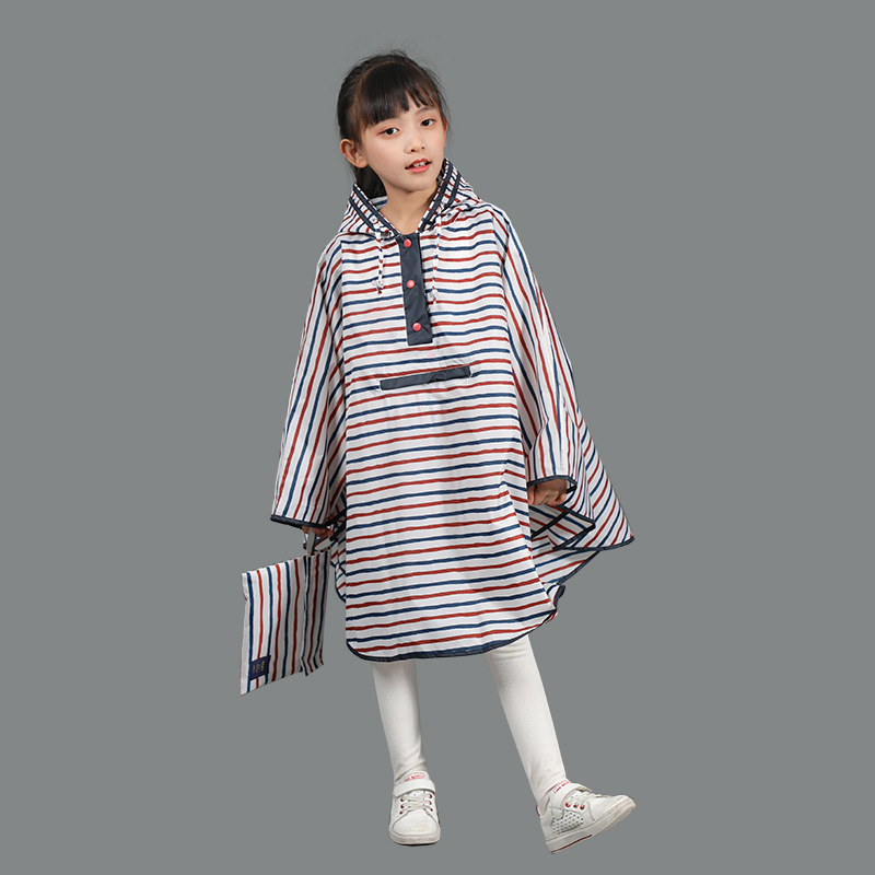 新款儿童雨衣,百搭简约纯色及条纹风格,采用轻簿防水布料,环保无异味,方便儿童携带。