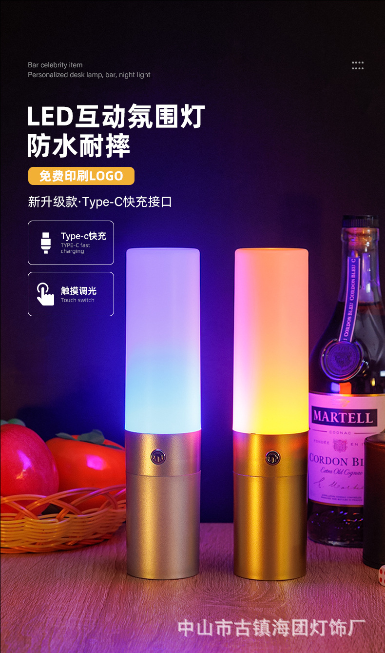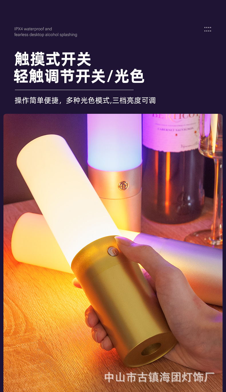 Led 충전식 바 테이블 램프 ktv 호텔 카페 장식 테이블 램프 밤 빛 원통형 분위기 손 잡고 스틱 테이블 램프