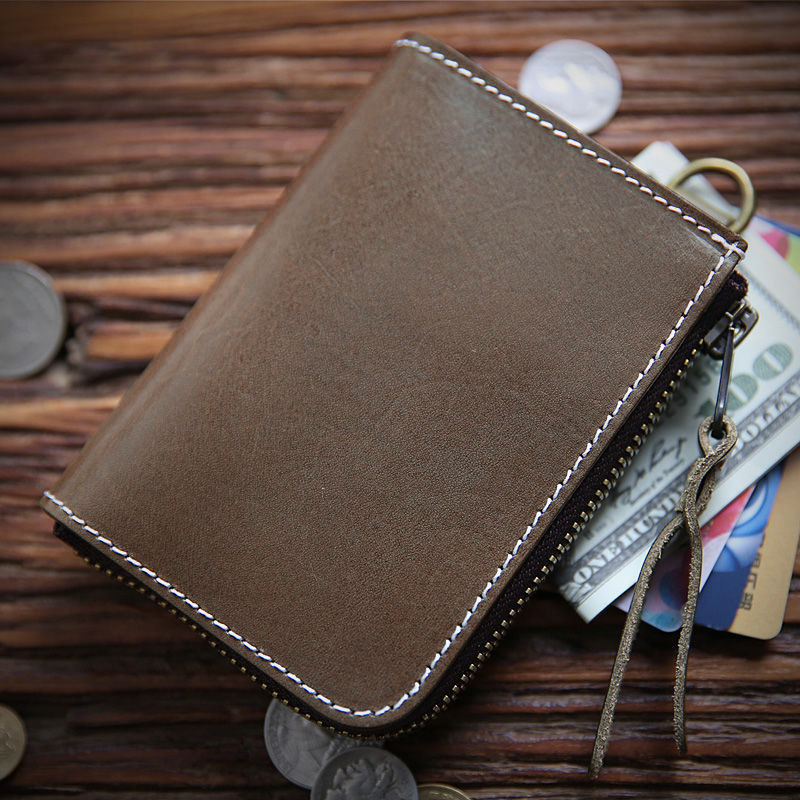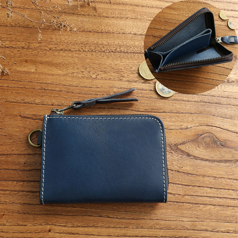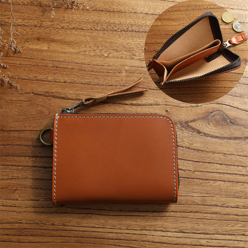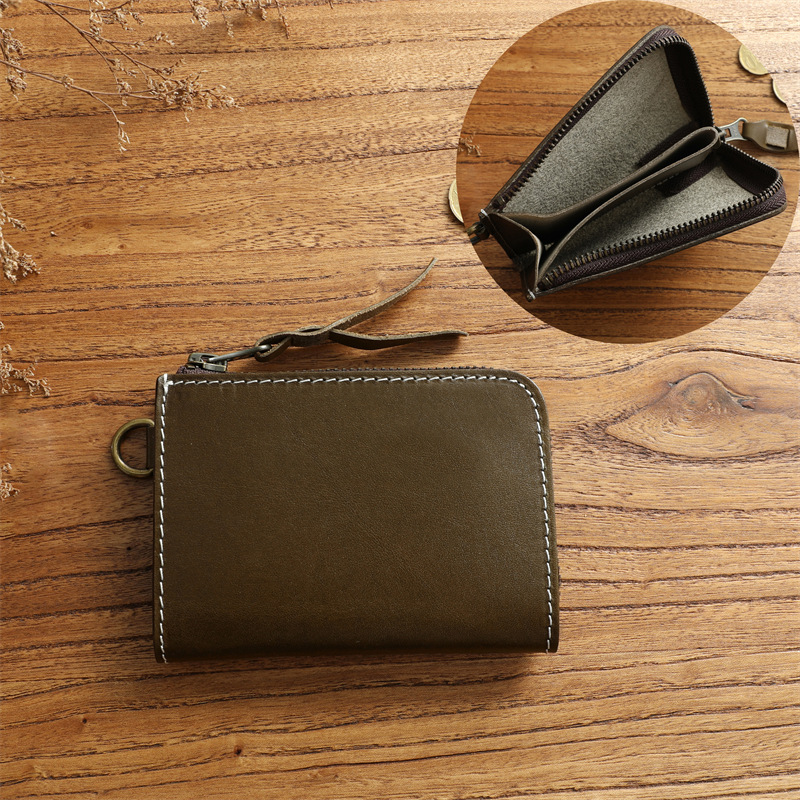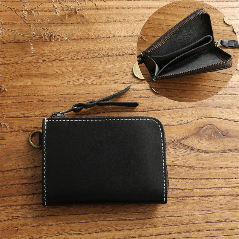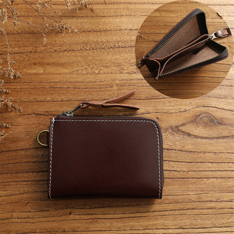 수제 빈티지 퍼스트 레이어 소가죽 남성 지갑 정품 가죽 짧은 지퍼 지갑 세로 지갑 운전 면허증 소지자