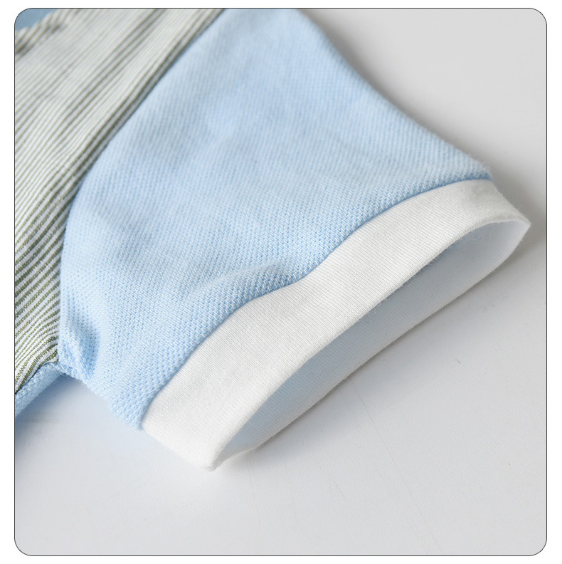 아동 의류 도매 여름 반팔 새 아기 옷 아기 소년 줄무늬 가방 방귀 아기 점프 슈트스토어 가기