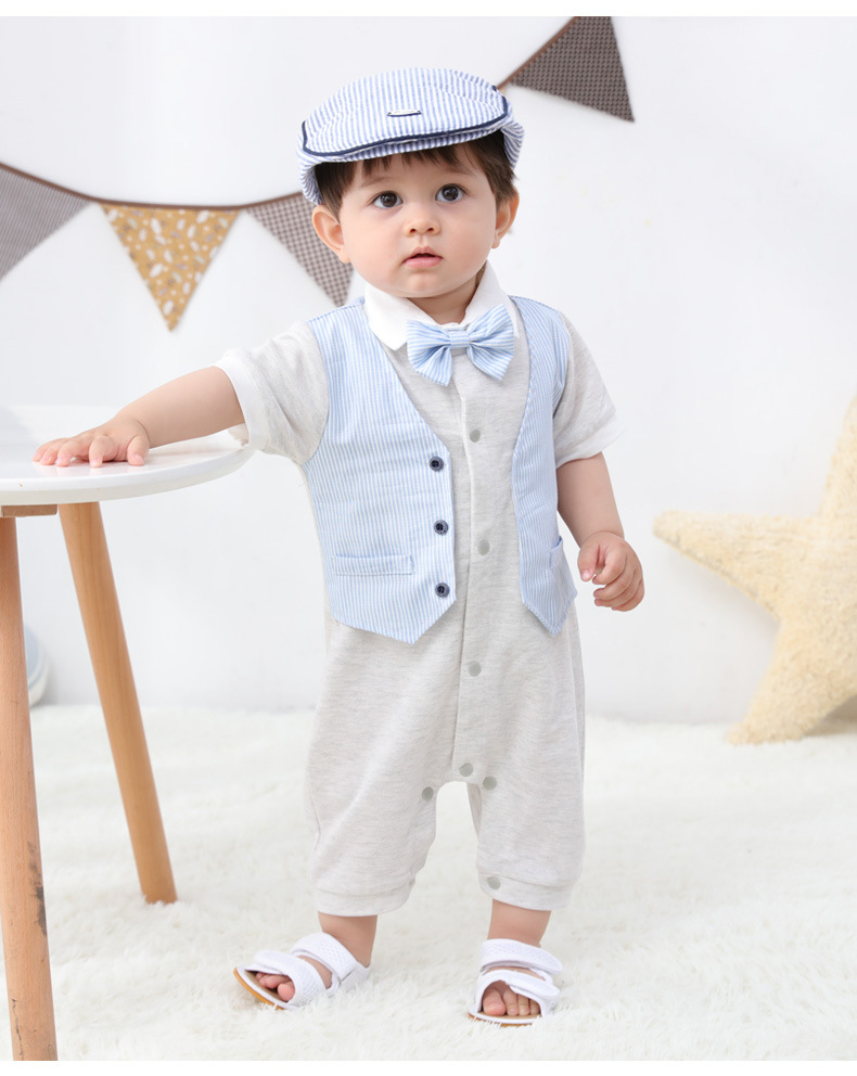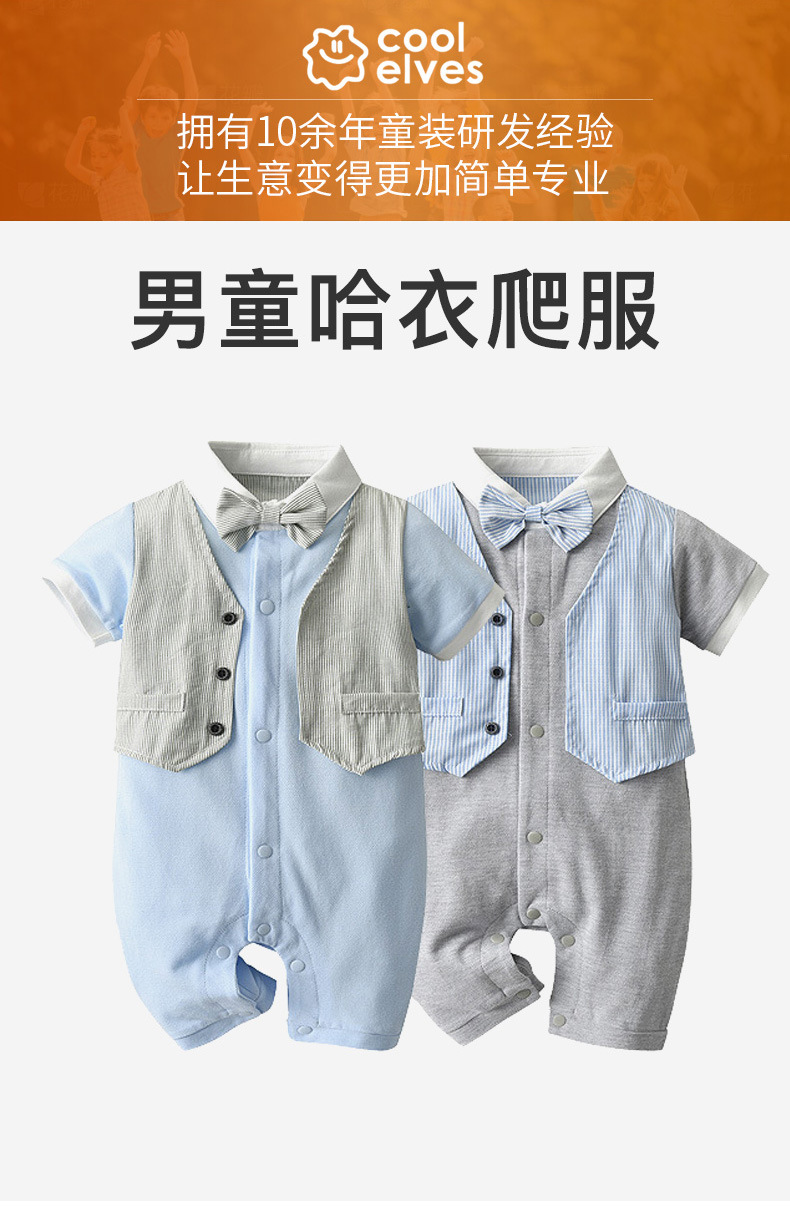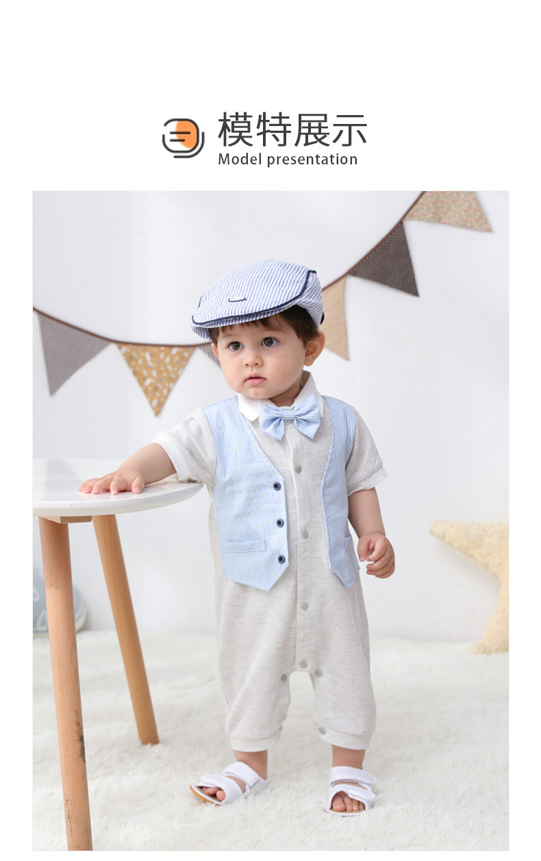 아동 의류 도매 여름 반팔 새 아기 옷 아기 소년 줄무늬 가방 방귀 아기 점프 슈트