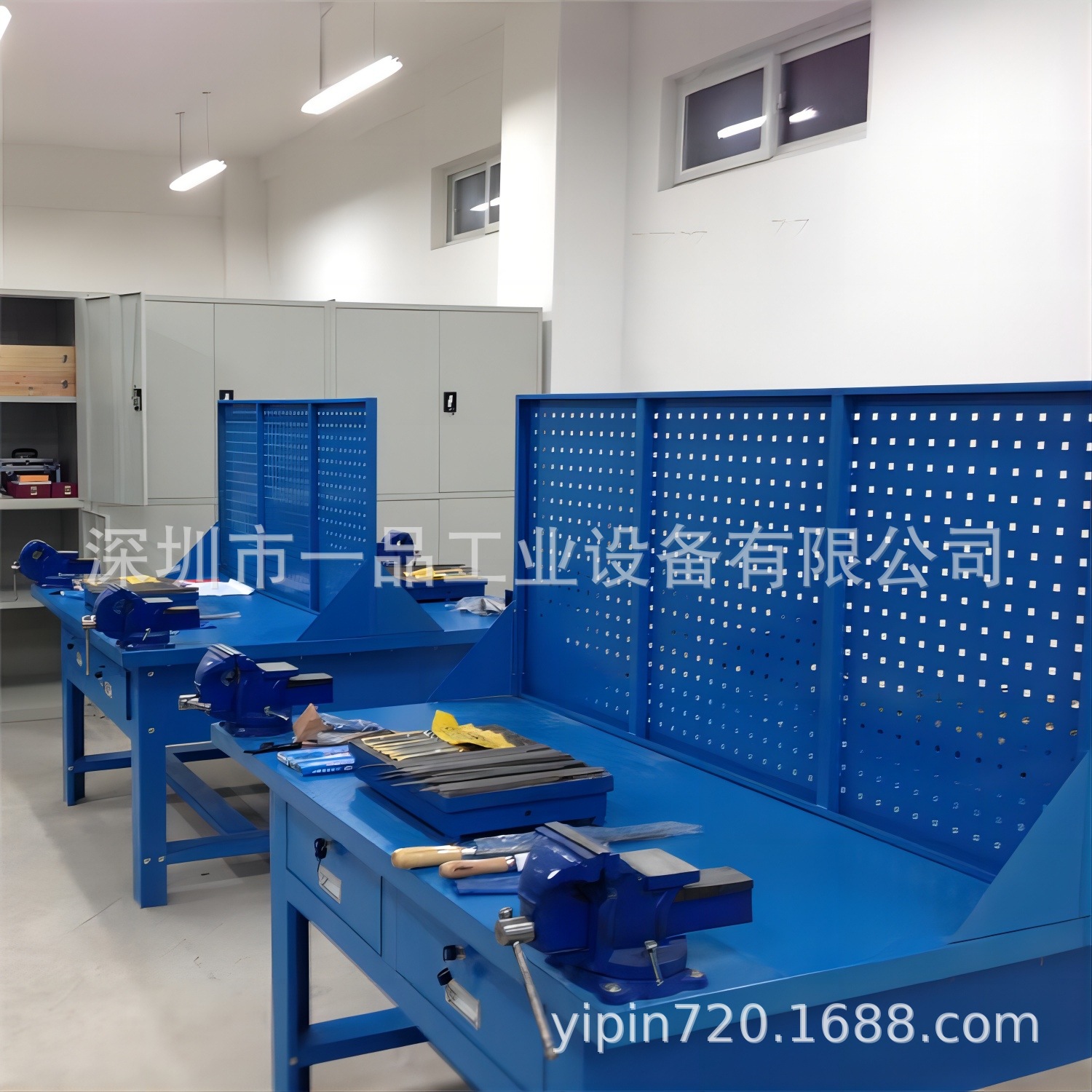 4、挂板采用正反两块钢板冲压而成,非钢丝网挂板(钢丝网多为3*3或2*2CM钢丝网,在学员敲打工件时不小心砸飞的情况下起不到很好的防护作用);更牢固、美观!可配套各种工业标准零件盒、挂钩、挂架等使用。