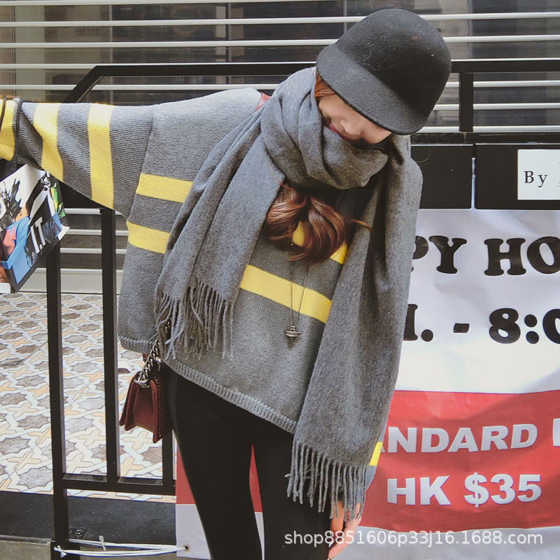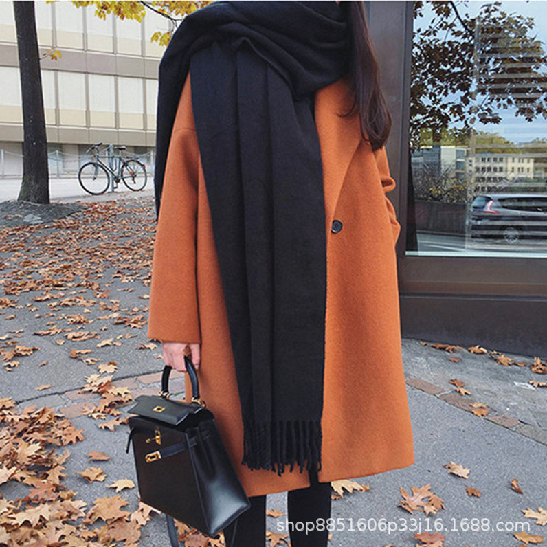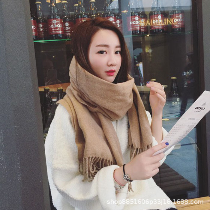 스카프 여성용 겨울 한국 스타일 모든 매치 여성용 숄 이중 사용 레드 롱 솔리드 컬러 스카프 따뜻한 두꺼운 망토 도매스토어 가기